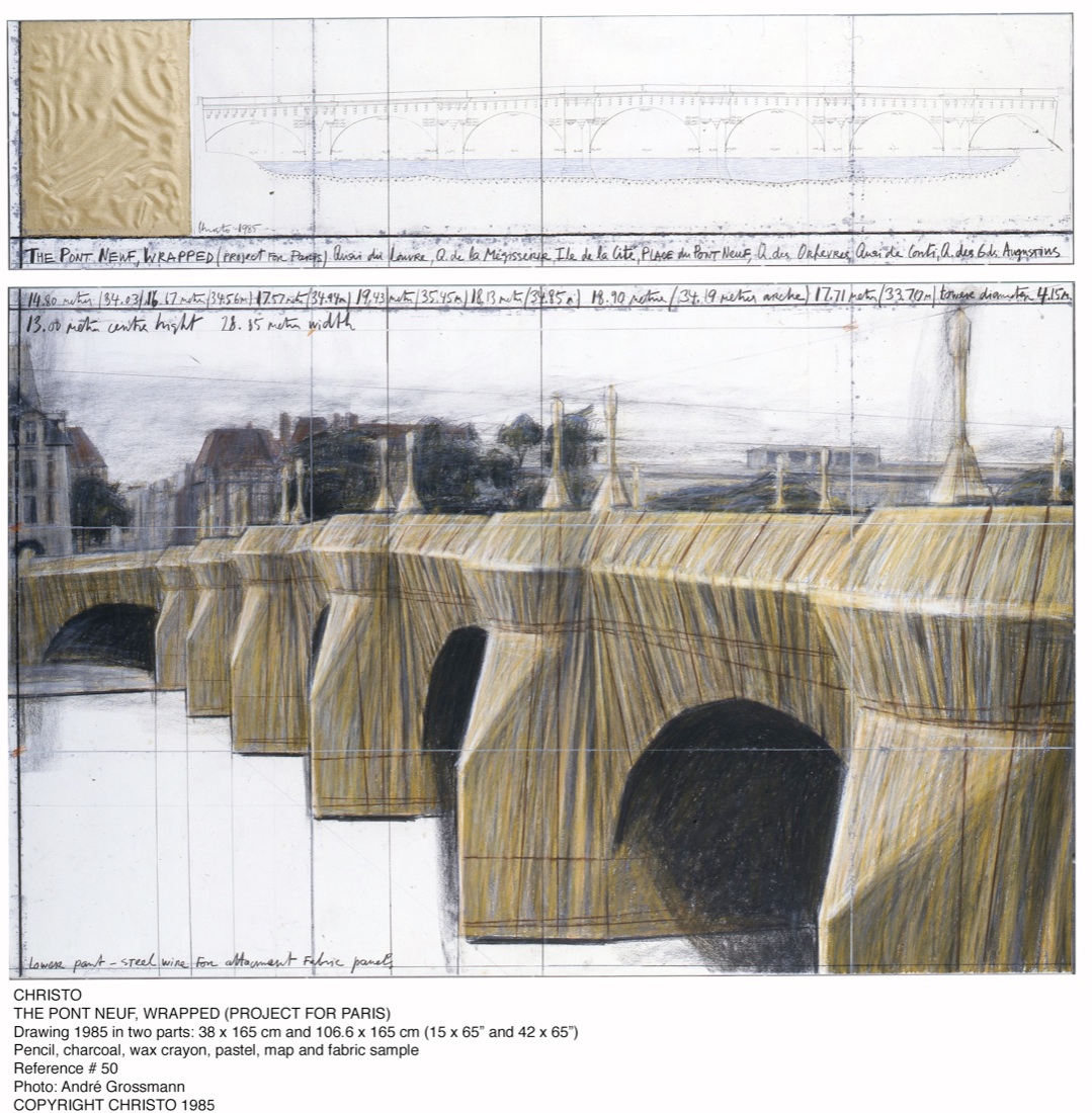 Acqua compresa. Dal 1961 infatti la coppia di artisti progetta e realizza opere galleggianti che mutano lo scenario acquatico, sia esso marino, lacustre o fluviale. E proprio i Water Projects ora sono in mostra a Brescia in oltre 150 tra studi diesgni, collage, modelli in scala, fotografie di opere realizzate, video e film, in un’esposizione cronologica delle loro sperimentazioni. Si vede così il Pont Neuf di Parigi, completamente foderato per un progetto degli anni 80, ma anche un piccolo arcipelago di isole che somigliano a ninfee appoggiate sul mare della Florida, fino ad arrivare a oggi con The Floating Piers, Project for Lake Iseo.
