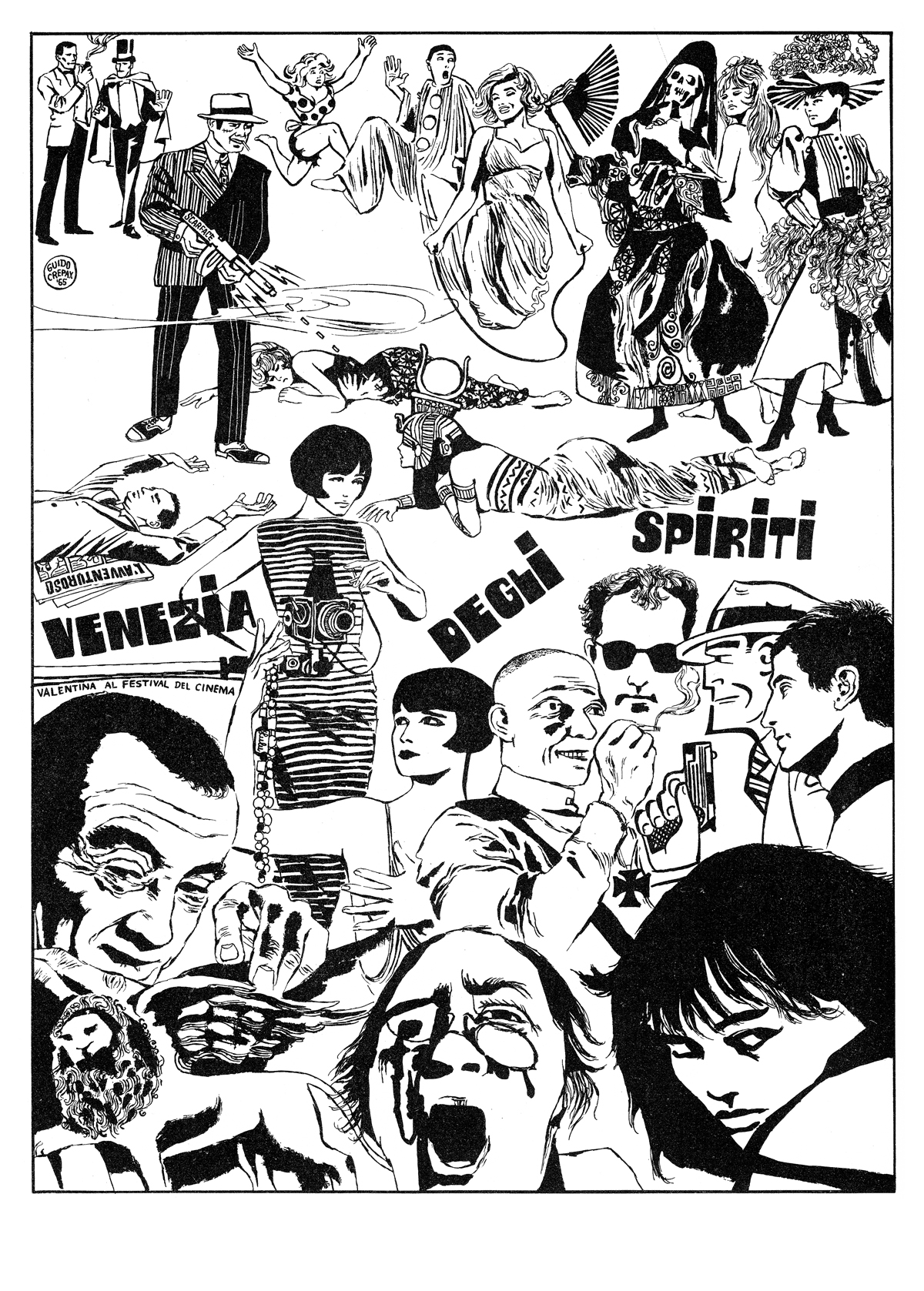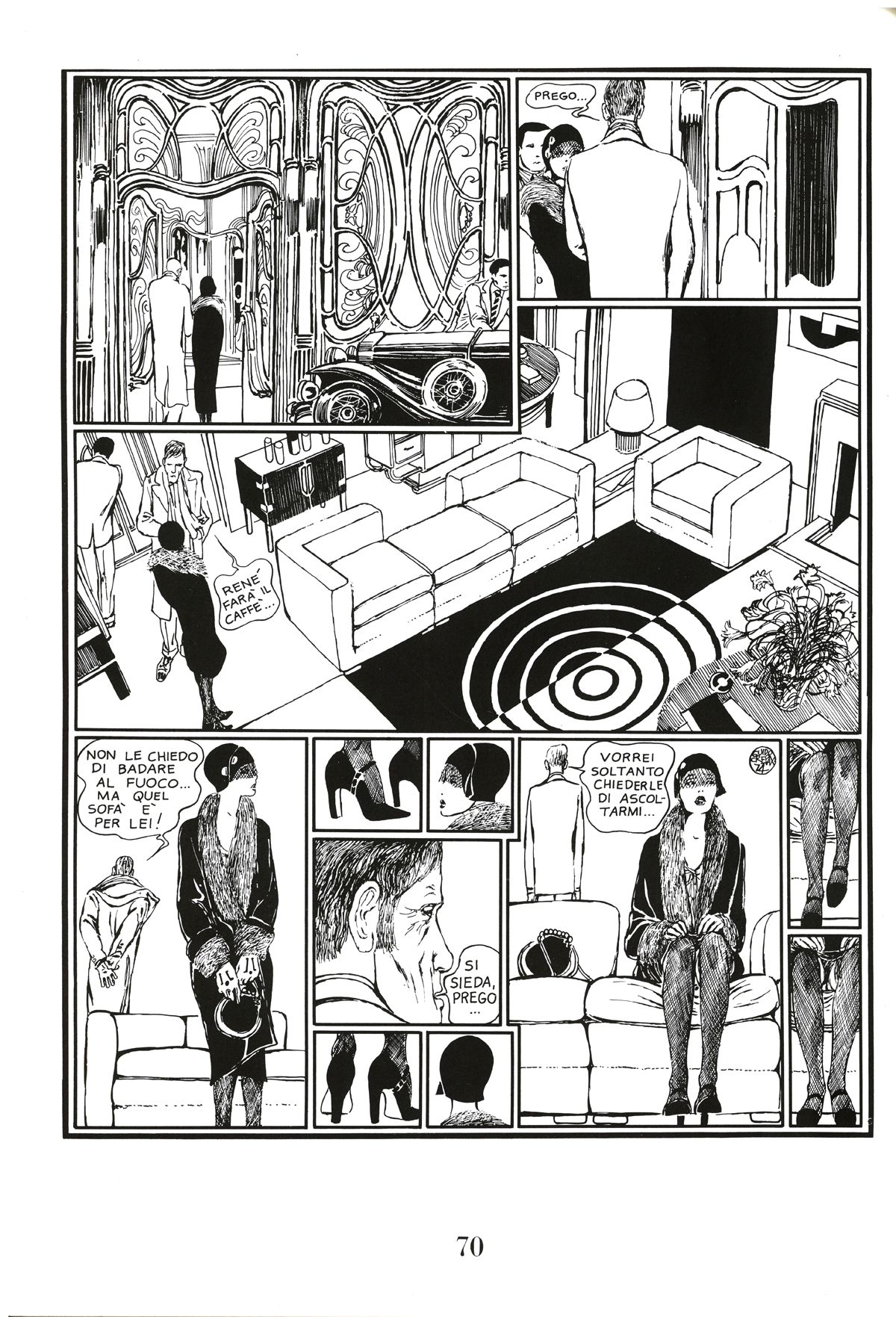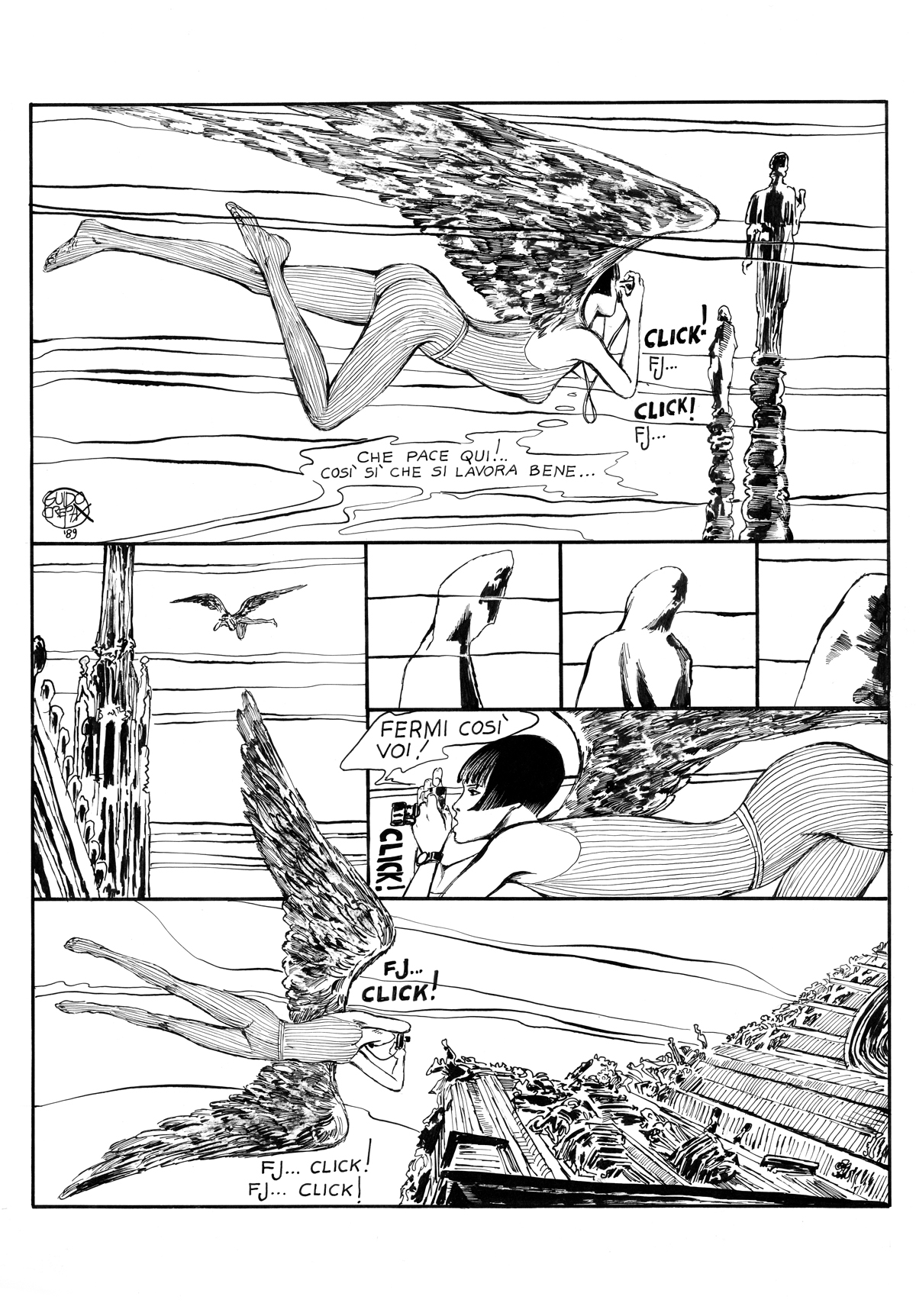 Il viaggio inizia con la sala dedicata a Milano, la sua città, i cui palazzi, gli interni delle abitazioni borghesi e i cortili sono i luoghi frequentati da Valentina. Si prosegue con una parte dedicata a Valentina e le altre (Bianca, Anita, Belinda, Giulietta e l’ultima nata Francesca), dove se la prima incarna un erotismo sensuale, Bianca è la più libera, Belinda la ragazza yeye e Francesca la prima a vivere in una famiglia allargata, cosa che Crepax era molto lontano dal concepire. Ma c’è anche Baba Yaga, disegnata al culmine della sua maturità narrativa, ovvero il perfetto opposto di Valentina. E poi le sale dedicate al Design, alla Moda, al Cinema, alla Musica e alla Fotografia. Tutte le sue passioni in circa 90 tavole, piene di citazioni: da Castiglioni a Blow up.