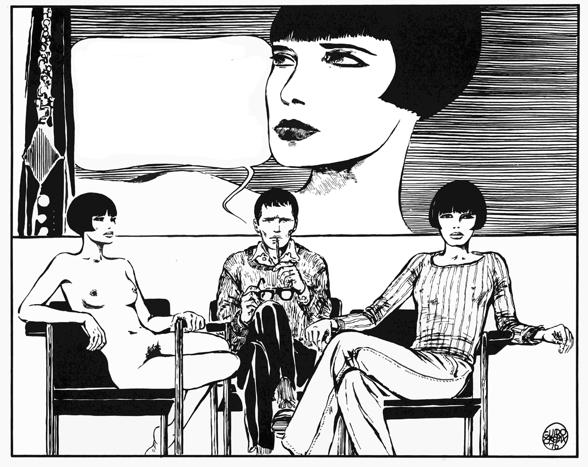Opere in parte della Fondazione e altre tenute ‘segrete’ dalla moglie Luisa (rigorosamente in caschetto), che ha ispirato insieme a Louise Brooks, il mito erotico di Valentina.