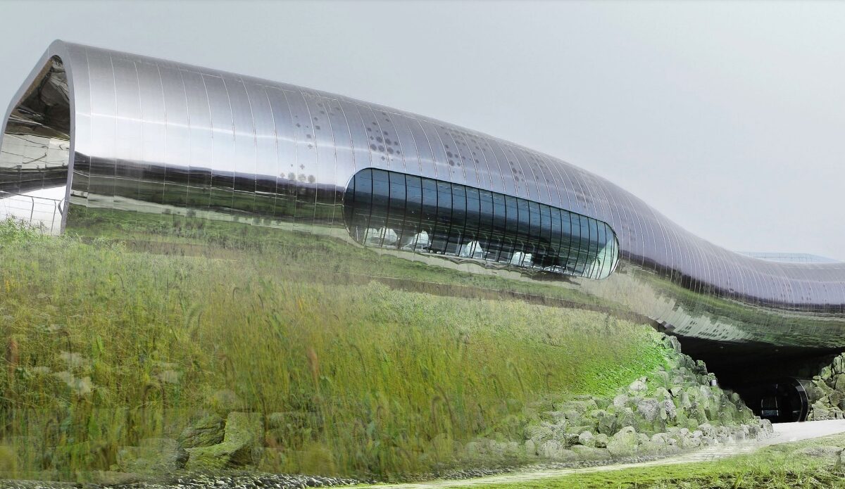 Il Museo della Preistoria Jeongok in Corea, progettato dallo studio di architettura francese X-TU, è un altro museo costruito pensando alla sostenibilità. L’edificio, inaugurato nel 2011, comprende una doppia parete per l’efficienza energetica. Inoltre è realizzato in materiale che riflette la luce, consentendo di mantenere un clima interno stabile. Si trova in un importante sito paleolitico, dove fu scoperta la prima ascia acheuliana nell’Asia orientale (1,5 milioni di anni fa!). Il museo potrebbe sembrare scintillante e spaziale, ma in realtà la struttura cerca di coesistere armoniosamente con l’ambiente naturale, fungendo fisicamente da soglia tra i tempi moderni e quelli arcaici. La forma morbida e arrotondata si snoda attorno al sito, rendendo omaggio al paesaggio acquatico che originariamente esisteva nelle vicinanze.