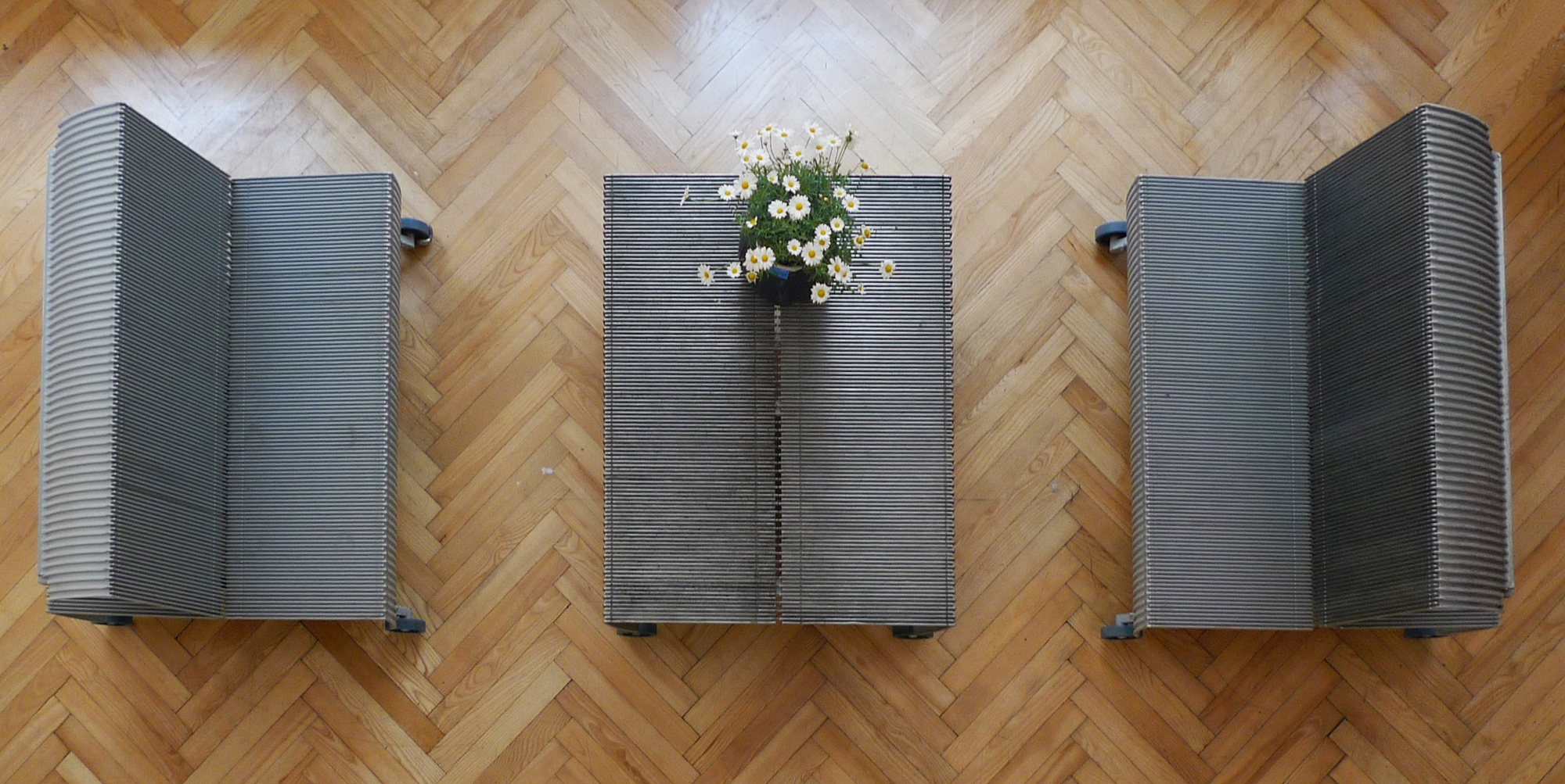 "De_escalator" di Michael Hensel comprende un tavolo e due panche fatti con con vecchie scale mobili