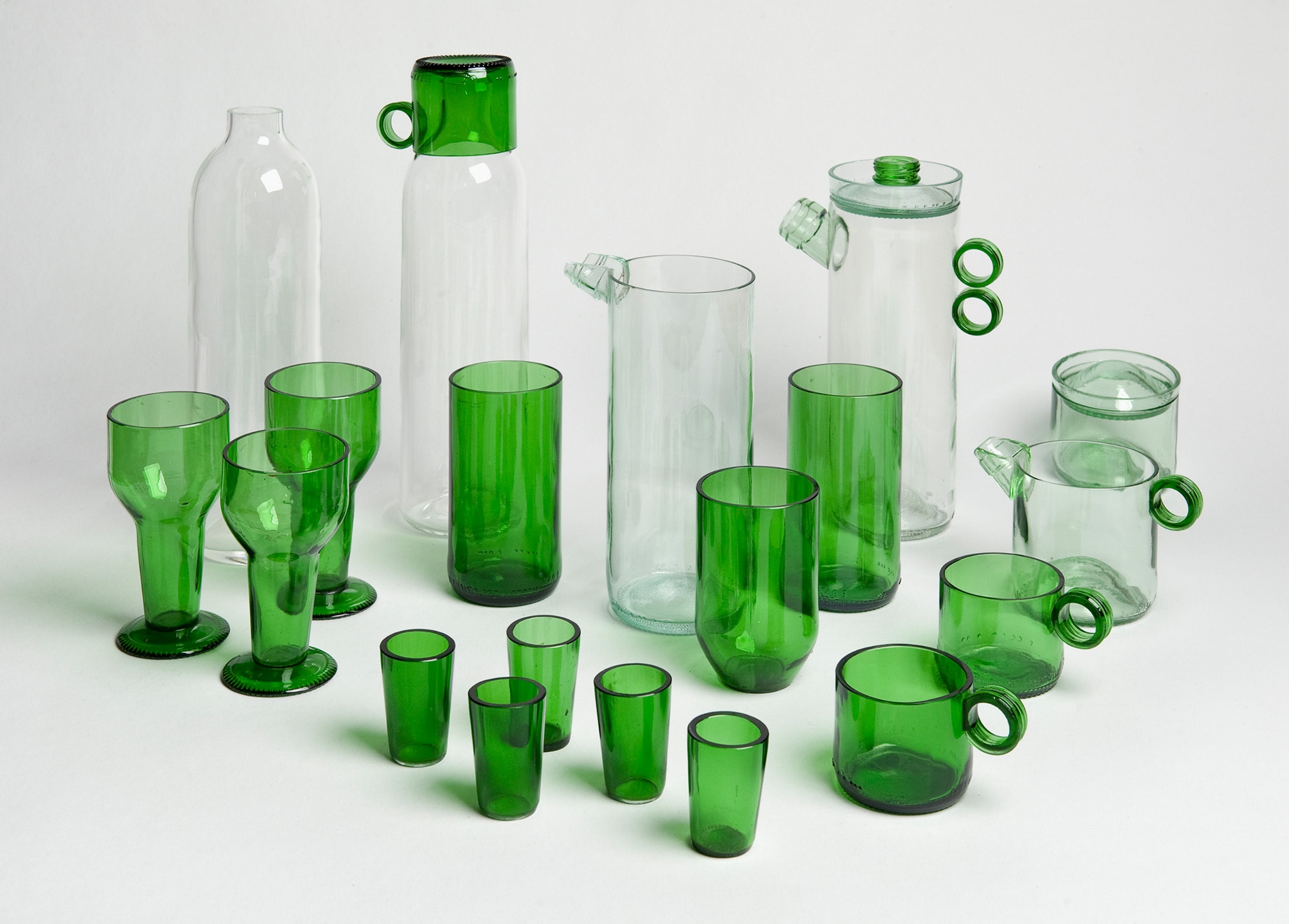 La designer polacca Daria Wartalska ha ricevuto il secondo premio con "Tableware recycling set", una serie di bicchieri e brocche fatte con bottiglie riciclate