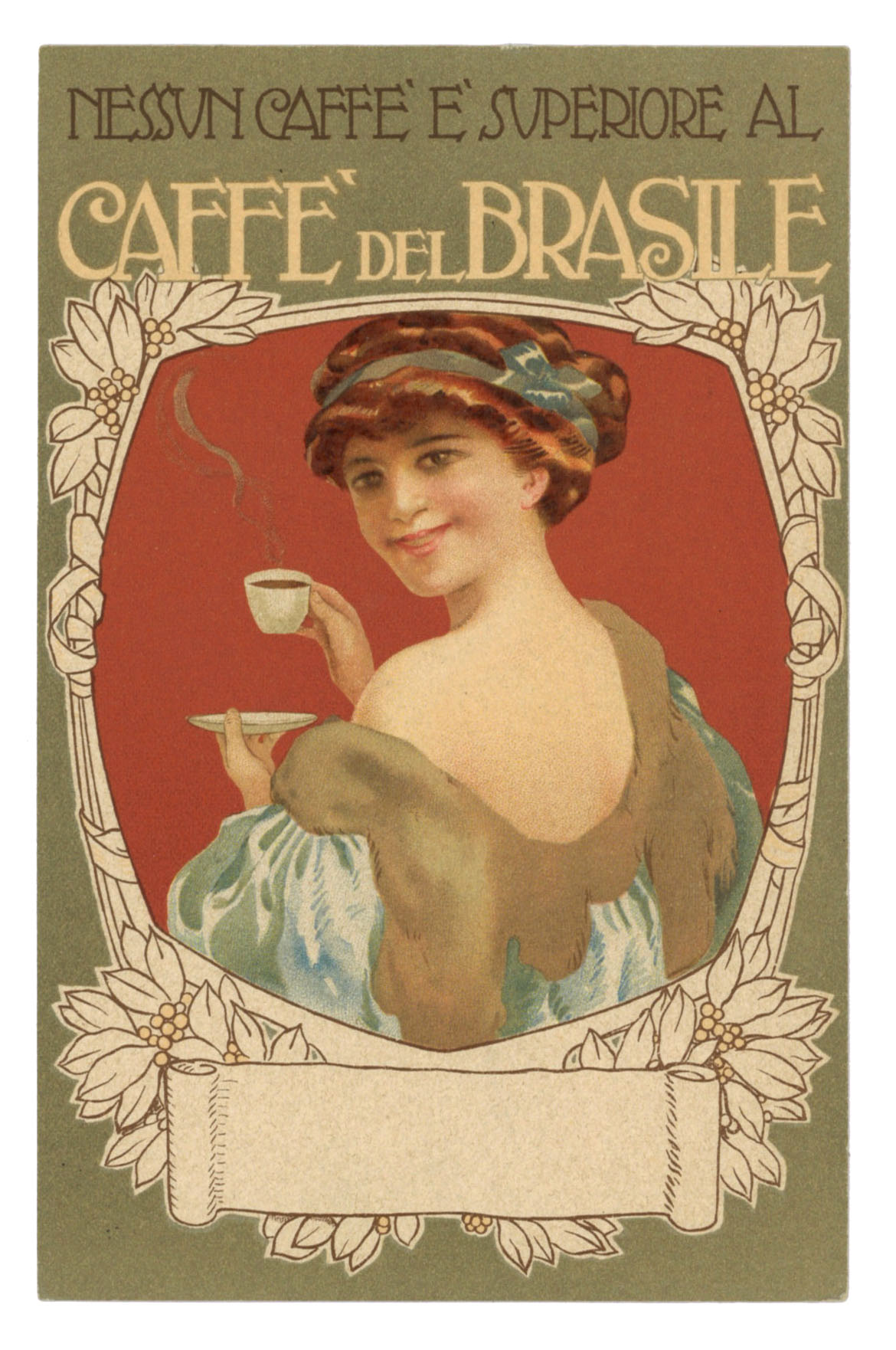 IL CAFFE’ – "Caffé del Brasile". Il cartiglio in basso serviva per sovrastamparvi il nome del rivenditore, 1905 circa.