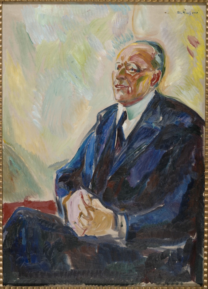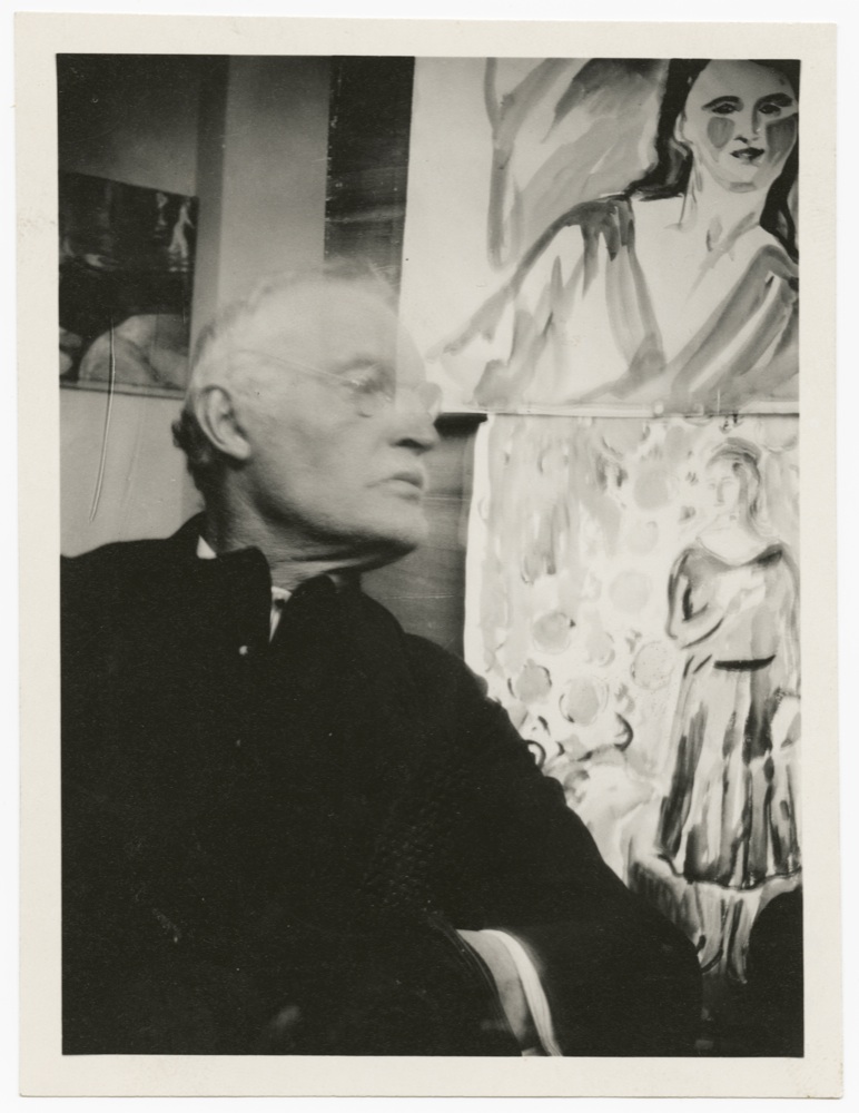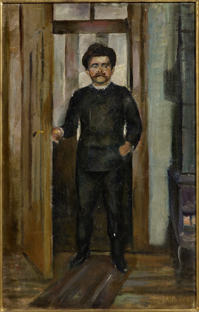 Edvard Munch, autoritratto davanti a due acquerelli, Ekely, 1930