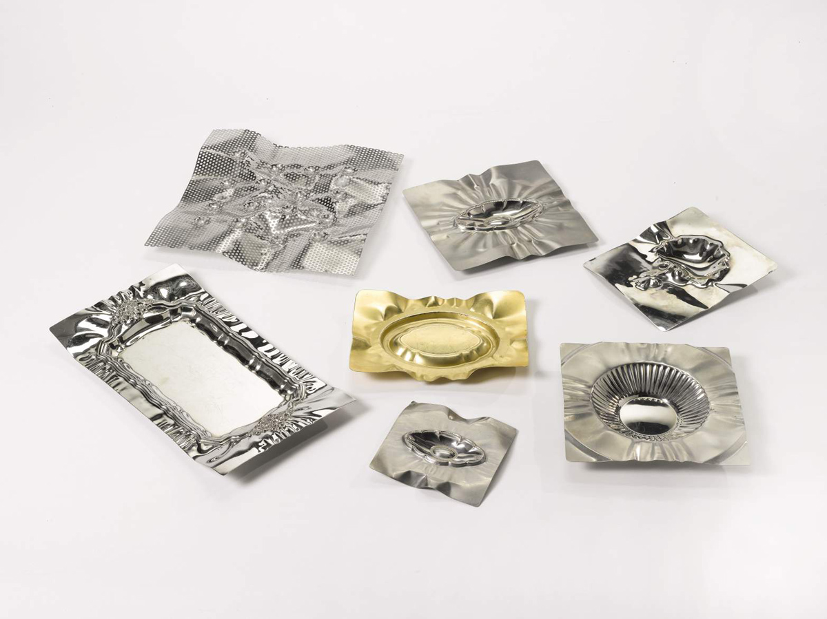 Una selezione di vassoi in metallo. Quotazione di base 150 dollari
