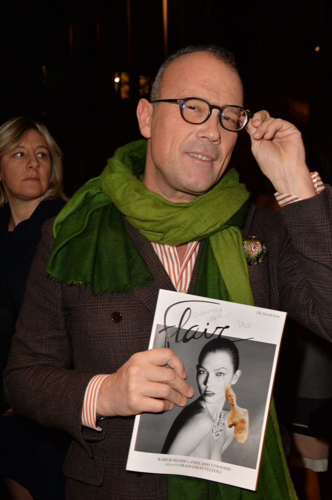 Aperitivo al Bugari di Milano, per festeggiare la collaborazione tra Flair e Francesco Vezzoli, con un serrato e inedito “issue signing” dell’artista sulle copertine del numero di novembre, in edicola da questa settimana. Le quattro versioni hanno per protagoniste Milla Jovovich, Jessica Miller, Hilary Rhoda, Karlie Kloss ritratte in intensi bianchi e nero dai fotografi Inez and Vinoodh, con un superlativo ed esclusivo artwork di Vezzoli per Flair, che combina ricamo e collage, titolato Venus vs Venus, 2013.