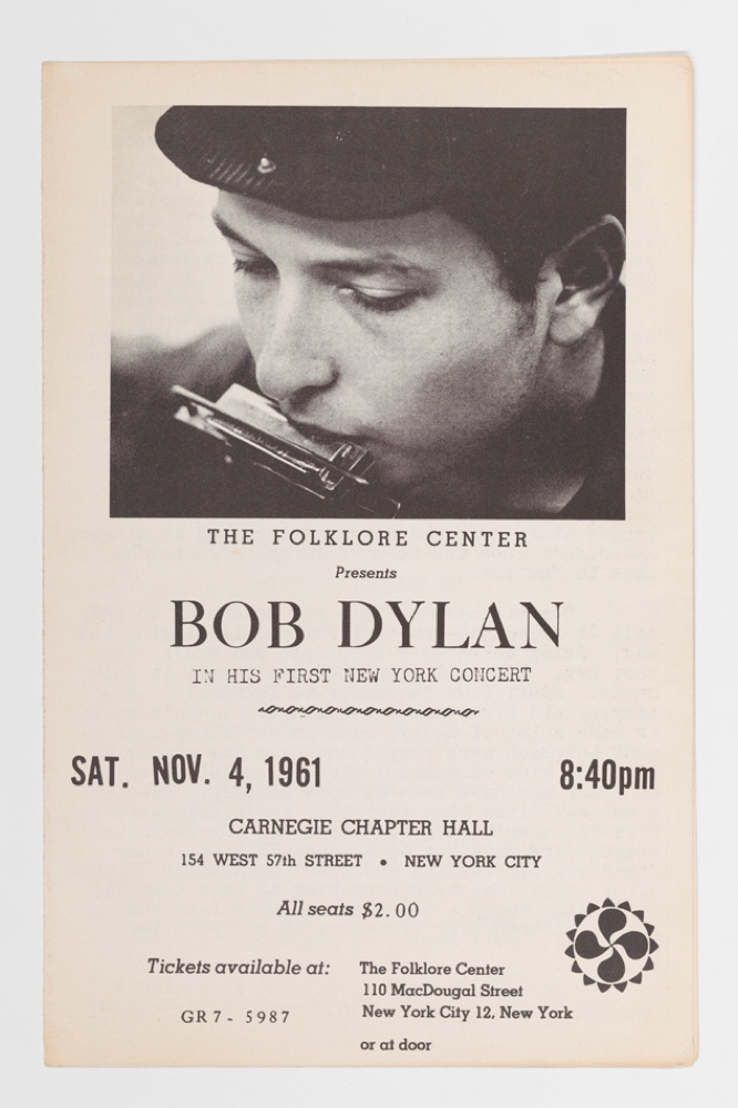Folklore Center presenta Bob Dylan al First New York Concert del 4 novembre 1961 (credit: ufficio stampa)