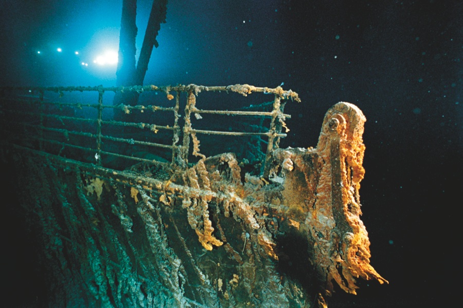 Emory Kristof – Atlantico del Nord, 1991. La prua del R.M.S. Titanic si staglia nel buio degli abissi illuminata dal sommergibile russo Mir I.