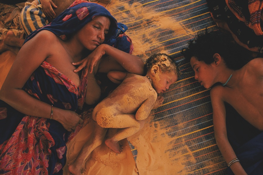 Joanna Pinneo – Mali, 1997 Coperta da un velo di sabbia proveniente dal letto asciutto di un lago, una famiglia fa un sonnellino in pieno pomeriggio.