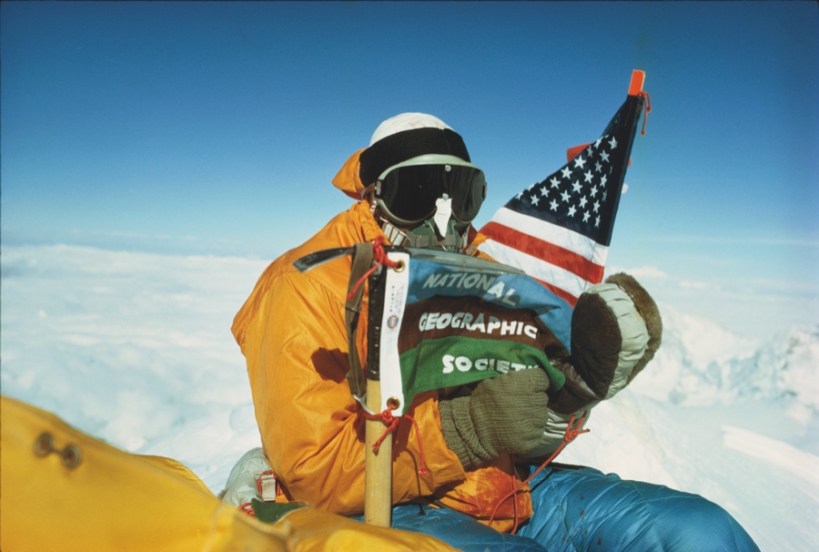 Luther Jerstad – Nepal, 1963. Barry Bishop di National Geographic posa con la bandiera montata su una piccozza in cima all’Everest. Non sapeva ancora che la foto gli sarebbe costata cara.