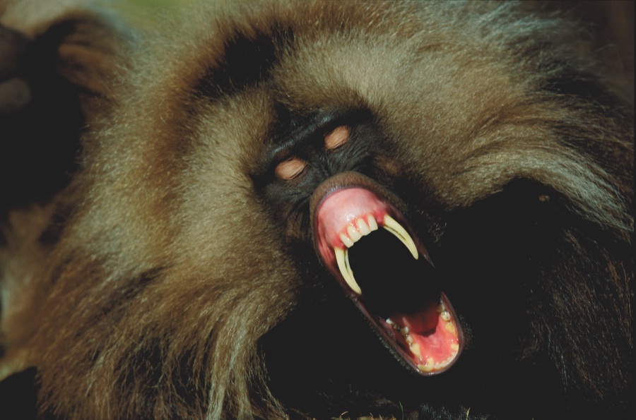 Michael Nichols – Parco nazionale del Semien (Etiopia), 2002 Il babbuino Gelada, che di solito si accontenta di mangiare l’erba delle praterie, ha comunque due canini decisamente pronunciati.