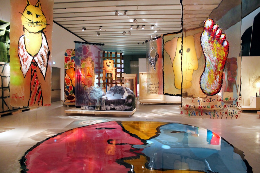 Una romanità colorata ha presenziato al cocktail d’apertura, da Giampiero Mughini e Roberto d’Agostino, le alte cariche del Maxxi Giovanna Melandri e Hou Hanru, e Vanna Meroni che con Meritalia produce oggi molte delle opere di Gaetano Pesce. E lo sanno bene le aziende che hanno lavorato con lui, tutti grandi nomi del Made in Italy (come Cassina, B&B Italia, Bernini), Gaetano Pesce può cambiare idea fino all’ultimo minuto, girando le carte in tavola la notte prima degli esami.