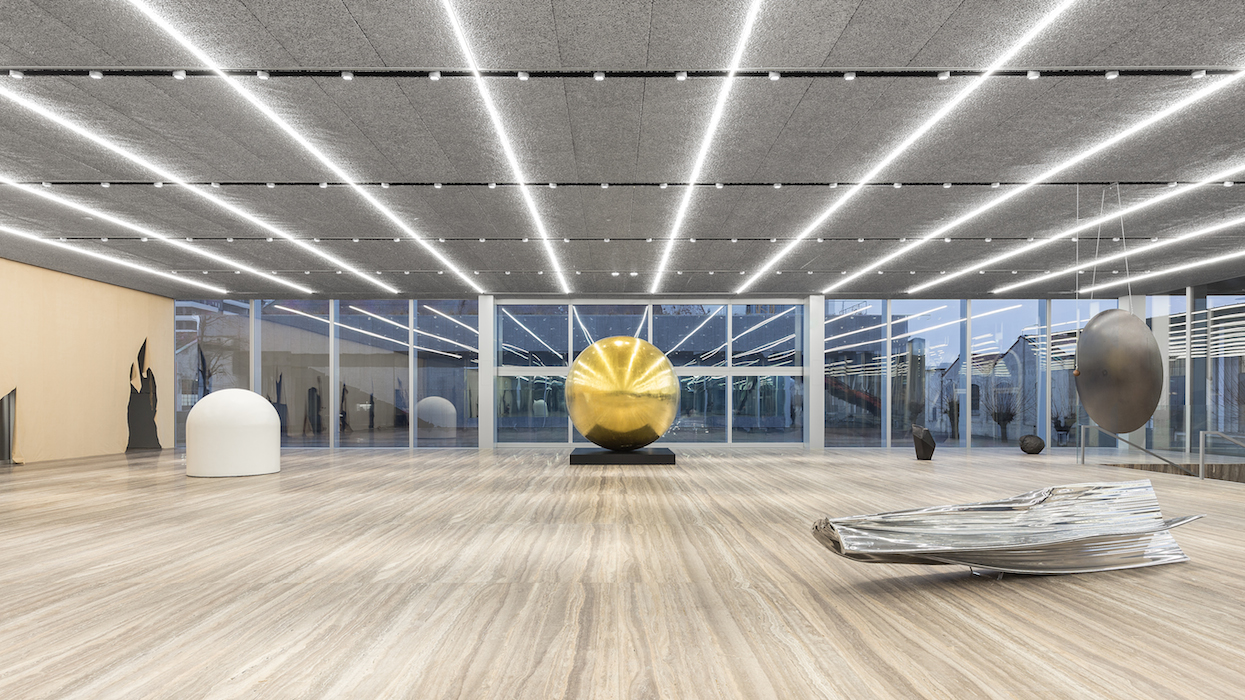 Il tema della memoria è perciò il fulcro dell’opera clou, un robot dalle sembianze umane (creato in Giappone) che declama un discorso composto da frammenti di frasi prese a prestito da grandi pensatori. Qui memoria e intelligenza artificiale sono messe in relazione attraverso l’arte della retorica. Attorno all’automa, collocato nel parallepipedo in mezzo al cortile del quartier generale – il Podium – si sviluppa una costellazione di opere di altri artisti, da Phyllida Barlow e James Lee Byars a Eliseo Mattiacci e Lucio Fontana – e un designer, Thomas Heatherwick, pescate in parte dalla collezione permanente o in arrivo da altre istituzioni museali.