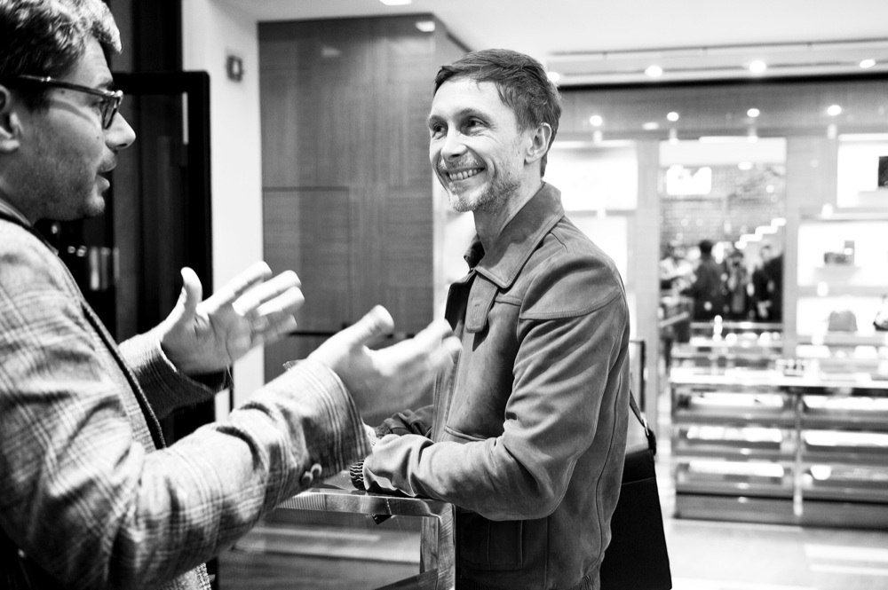 Accade quando il savoir-faire francese si unisce all’eleganza italiana in un cocktail party pensato per celebrare un numero speciale di Icon che racconta di uomini e di stili. Di storie di moda e di passioni maschili: come quella per gli orologi che avrà un allegato dedicato, Sublime, da collezionare. Così dietro le vetrine dello store meneghino, che si prepara a festeggiare i centosessant’anni della Maison con il progetto Celebrating Monogram firmato da designer come Christian Louboutin, Karl Lagerfield o Marc Newson, ospiti e amici hanno potuto sfogliare in anteprima il magazine con coverman d’eccezione scattato da Mark Seliger: Bryan Ferry, un «rocker in smoking, un dandy dai gesti eleganti che con la sua band ha plasmato il rock britannico». (a sorpresa il 13 novembre ci sarà una seconda cover, da scoprire in edicola).