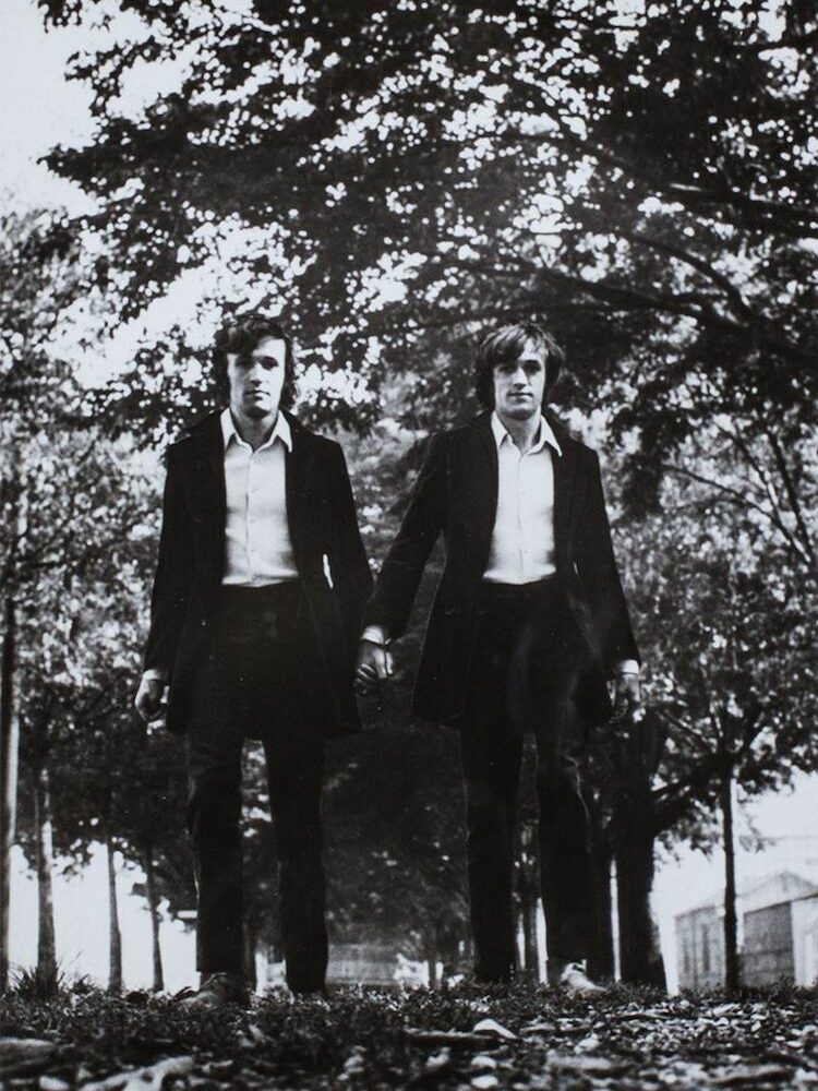 Per giungere allo stretto contemporaneo possiamo citare l’antesignana del linguaggio della performance Marina Abramović che per molto tempo ha proposto nel suo lavoro il compagno Ulay come una sorta di Gemello astrale – i due artisti sono nati nello stesso giorno -, o nell’opera fotografica giù recente, Me & Me del 2008: un doppio autoritratto dove l’artista ha due volti, uno reale e uno più piccolo che le sbuca dietro al collo. Anche Alighiero Boetti ha toccato questo tema con Gemelli del 1968: una foto che ritrae due Boetti per mano in cui, spiegava l’artista: “Non sono il riflesso narcisistico l’uno dell’altro, ma dissimili e complementari. Io sono io, e lui è lui”. Anche Michelangelo Pistoletto agli inizi degli anni Sessanta, grazie all’utilizzo di superfici specchianti, ha approfondito il tema del doppio, la relazione tra immagine e verità, tra la rappresentazione artistica e la realtà vissuta dallo spettatore. Sempre nel movimento dell’Arte Povera, con Pistoletto potremmo citare Giuseppe Penone con l’opera Essere fiume: due pietre apparentemente identiche, una prelevata dal letto di un fiume di montagna, l’altra realizzata nel ’98 dall’artista. Per finire la nostra carrellata citiamo gli enfants terribles della scena inglese, Jake e Dinos Chapman. Alla fine degli anni ’90 i due artisti declinano una variante dei gemelli siamesi in chiave grottesca inserendo nelle proprie installazioni diverse figure dal corpo mostruoso il cui tronco culmina in più teste uguali, mentre i volti, dai medesimi lineamenti, esprimono apatia e tristezza.