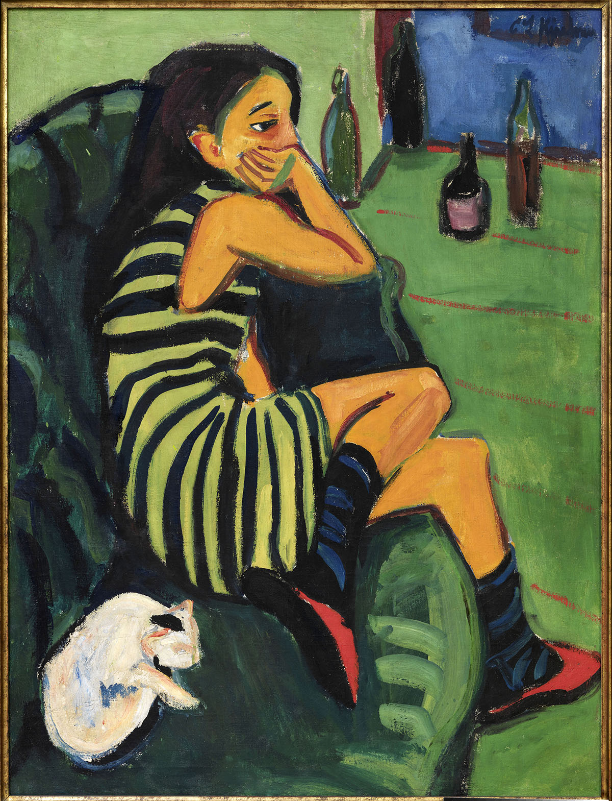 Artista-Marcella è l’icona dell’Espressionismo Tedesco in mostra al Palazzo Ducale di Genova. A dipingerlo fu Kirchner, presente anche con “Nudo che si pettina”, un Autoritratto del 1914 e con alcuni pastelli in cui raffigura angoli cittadini, scene di strada. Proprio la vita quotidiana, pregna di pulsioni, anche erotiche, fu al centro dell’interesse di questi artisti che, come dice la parola stessa Brucke, vollero fare da ponte tra la pittura neo romantica e un genere nuovo, appunto l’Espressionismo.
