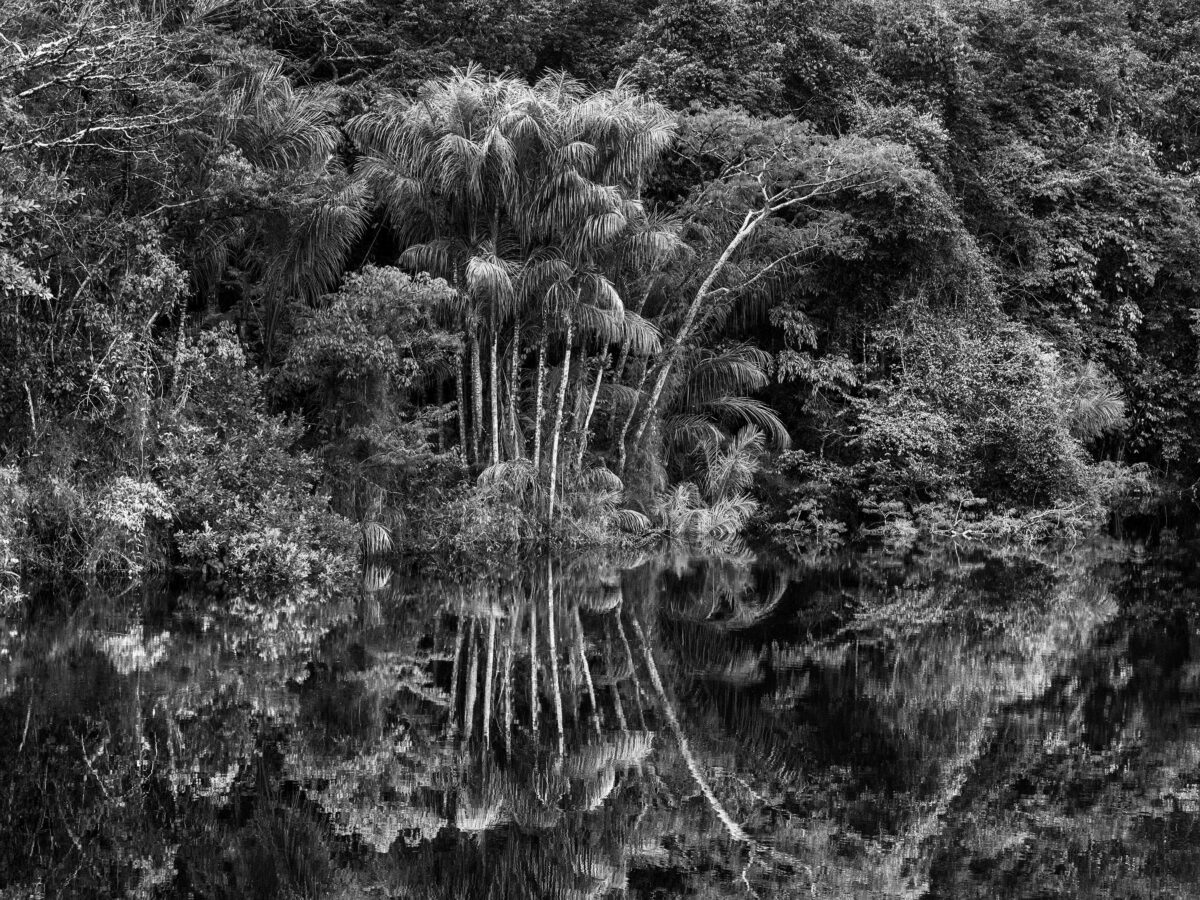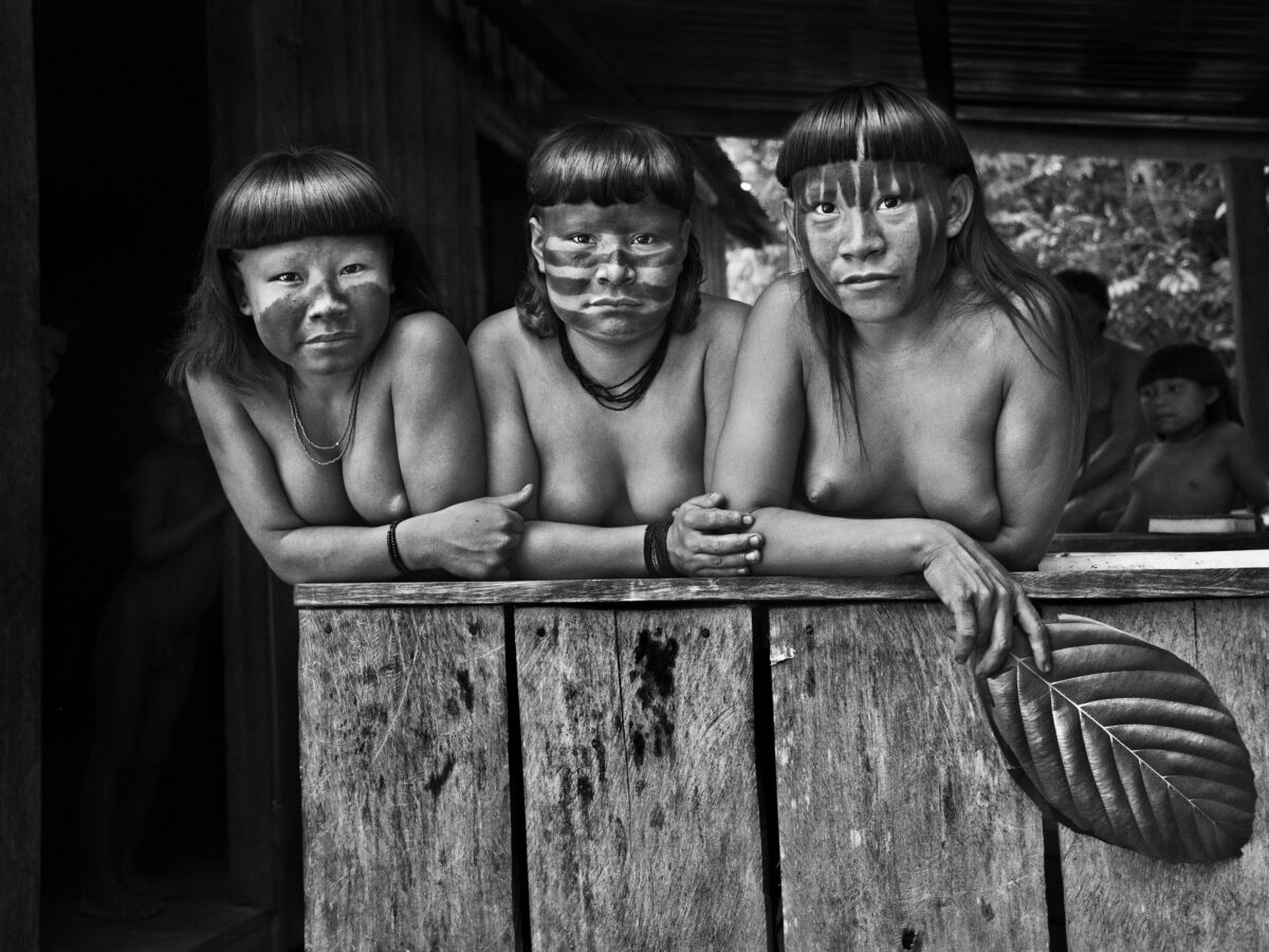 Da un lato, nella prima, gli scatti sono organizzati per ambientazione, in sezioni che vanno dalla Panoramica della foresta, con l’Amazzonia vista dall’alto, a I fiumi volanti, una delle caratteristiche meno conosciute della foresta pluviale. Tutta la forza, talvolta devastante, delle piogge è raccontata in Tempeste tropicali, mentre Montagne presenta i rilievi montuosi che definiscono la vita del bacino amazzonico. Da lì si prosegue con la sezione La foresta, un tempo definita “Inferno Verde”, da vedere come uno straordinario tesoro della natura, per finire con Isole nel fiume, l’arcipelago che emerge dalle acque del Rio Negro. Dall’altra parte, invece, la dedica alle diverse popolazioni indigene immortalate nei suoi numerosi viaggi, dagli Awá-Guajá, formati da solo 450 membri, e considerati la tribù più minacciata del pianeta, agli Yawanawá, che hanno ripreso il controllo delle proprie terre e la diffusione della loro cultura, fino ai Korubo.