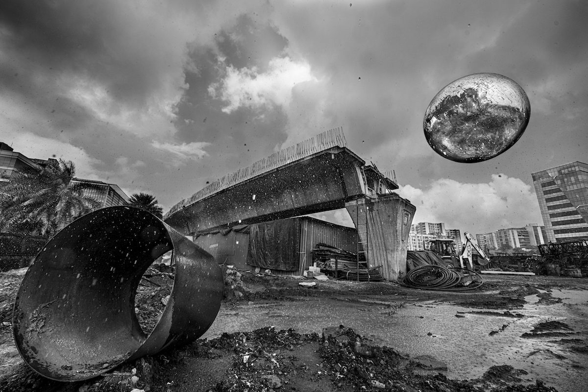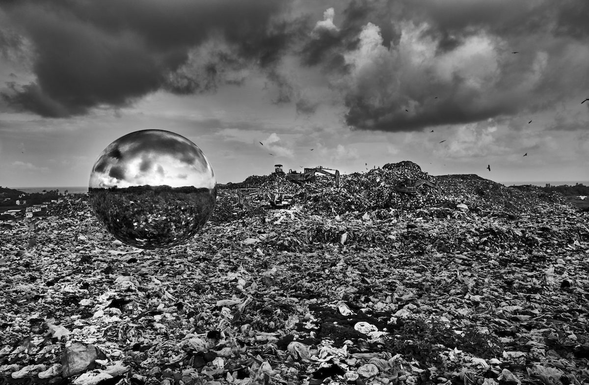 Stile e sensibilità diversa quella di Max Vadukul, che nella mostra The Witness, Climate Change ospitata alla Fondazione Sozzani fino all’8 gennaio 2023, presenta un reportage di circa venti immagini in grande formato interamente dedicato all’ambiente e agli effetti del cambiamento climatico. Tra il 2018 e il 2020, Vadukul ha documentato con uno sguardo originale e stimolante Mumbai e altre metropoli indiane, alcune delle aree più inquinate del mondo. Le immagini che presenta sono la sintesi di un crudo e sintetico realismo, fuso con un tocco surreale: in ogni immagine campeggia una sfera specchiante. Questo monolite riflettente che fluttua sopra le discariche tossiche sembra un testimone silenzioso della devastazione provocata dall’inquinamento. Per il fotografo è una sorta di osservatore cosmico, testimone del devastante impatto dell’uomo sull’ambiente e degli effetti del cambiamento climatico.