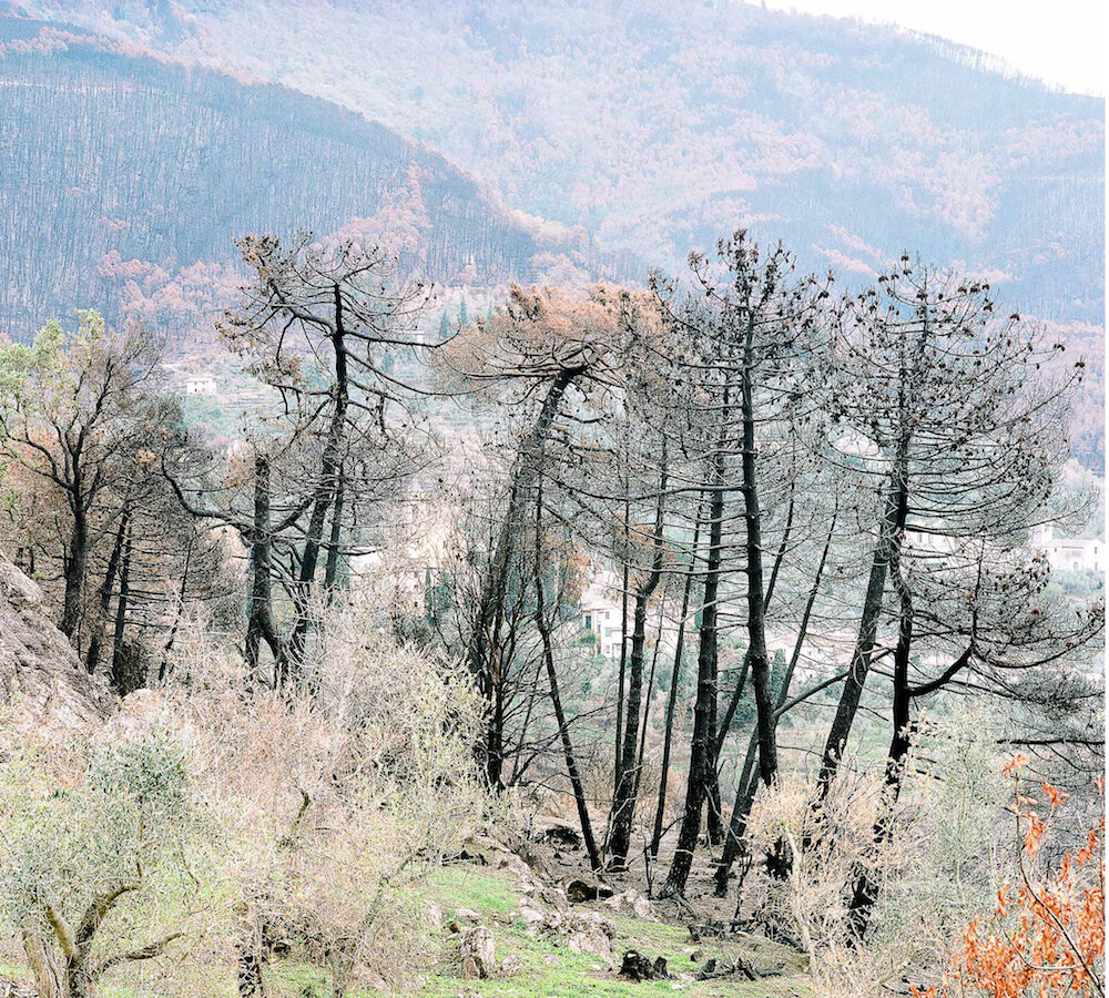 Con la mostra Montemagno. Un paradiso sotto la cenere, ci immergiamo nel reportage di Giacomo Bretzel ospitato fino all’11 ottobre al Teatro Litta di Milano. Dagli anni ’90, e tuttora in corso, il fotografo ha iniziato un lungo percorso reportagistico nel piccolo borgo dell’entroterra toscano di Montemagno, famoso per la spremitura delle olive. Legato da un rapporto intimo con questo luogo – il fotografo vi ha trascorso l’infanzia con la famiglia e suo nonno è stato protagonista della cultura artigianale – Bretzel lo racconta con immagini che mostrano dettagli di paesaggio, fusti di alberi, volti di contadini dagli sguardi pacifici: immagini bucoliche che ci trasportano in una realtà dove il tempo lento del raccolto e la fatica dei lavori manuali non aliena le persone ma le ammanta di una stanchezza salutare e benigna. Alla serenità di questi scatti, si alternano immagini che documentano le tracce indelebili lasciate dall’incendio di alcuni anni fa, che ha distrutto gran parte della macchia mediterranea, dei boschi e della vita del borgo.