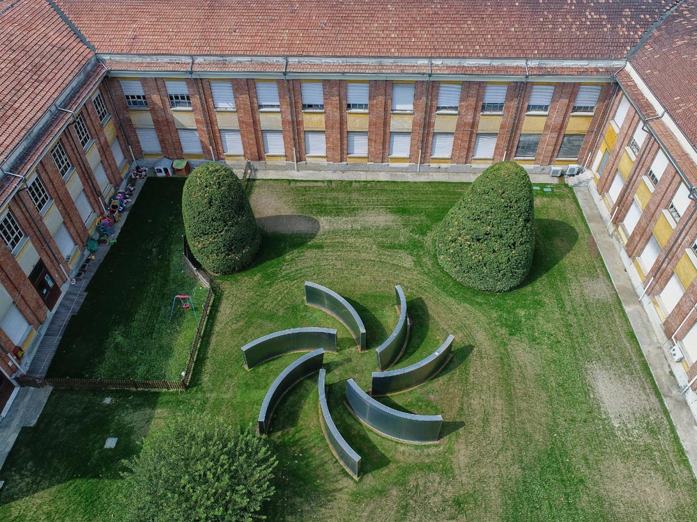 Vortici è il nome dell’opera che ha inaugurato questa manifestazione, una scultura dell’artista giapponese Hidetoshi Nagasawa, esposta per un anno in Piazza Castello e ideata proprio per dialogare con l’architettura della città. Sette elementi fissati al suolo disegnano un vortice, metafora di quell’energia che attraversa tempo e spazio, secondo un movimento concentrico con cui interagiscono residenti e visitatori.