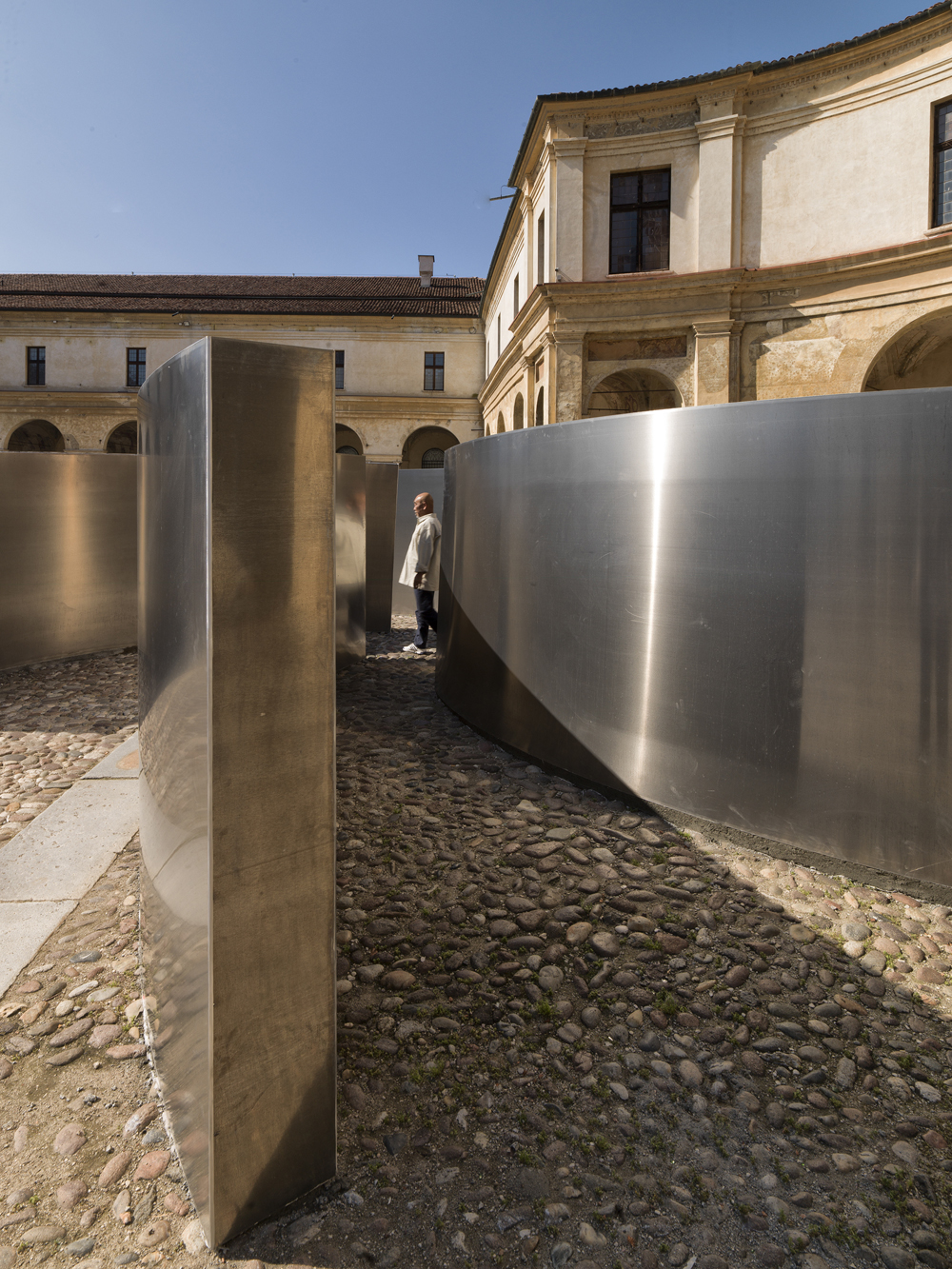 Oggi, dopo un anno, Vortici si sposta nel giardino della sede di Lubiam, rimanendo nel territorio mantovano, in un’azienda storica, edificata alla vigilia della seconda guerra mondiale, che ospita quadri come la tela seicentesca “La cacciata dell’invitato indegno”, che faceva parte della collezione dei Gonzaga, e le opere di Ferruccio Bolognesi. Una passione per l’arte che la sartoria Lubiam e la Famiglia Bianchi, proprietaria del marchio, sostengono da sempre attraverso ristrutturazioni, premi, progetti dedicati alle scuole e collaborazioni con il Museo Guggenheim di Venezia.