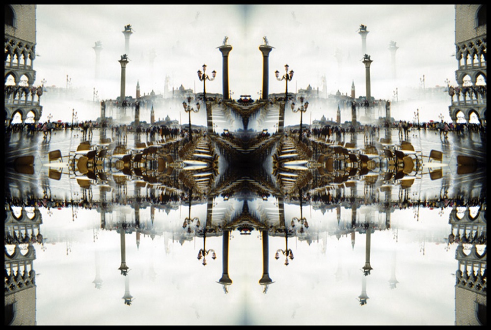 Che risalta anche nelle sue architetture, sempre in bilico tra la visione reale e quella simbolica di ciò che viene rappresentato. Così Venezia che si rispecchia nella laguna è sottoposta anche a un effetto deformante, fino ad assumere i toni astratti, esattamente come gli interni della Rotonda della Besana, a Milano, in cui le colonne e le volte formano delle volute quasi optical. La tecnica di Maria Mulas interviene sulla pellicola attraverso rielaborazioni manuali, sovrapposizioni, deformazioni, scomposizioni e ricomposizioni dei fotogrammi.