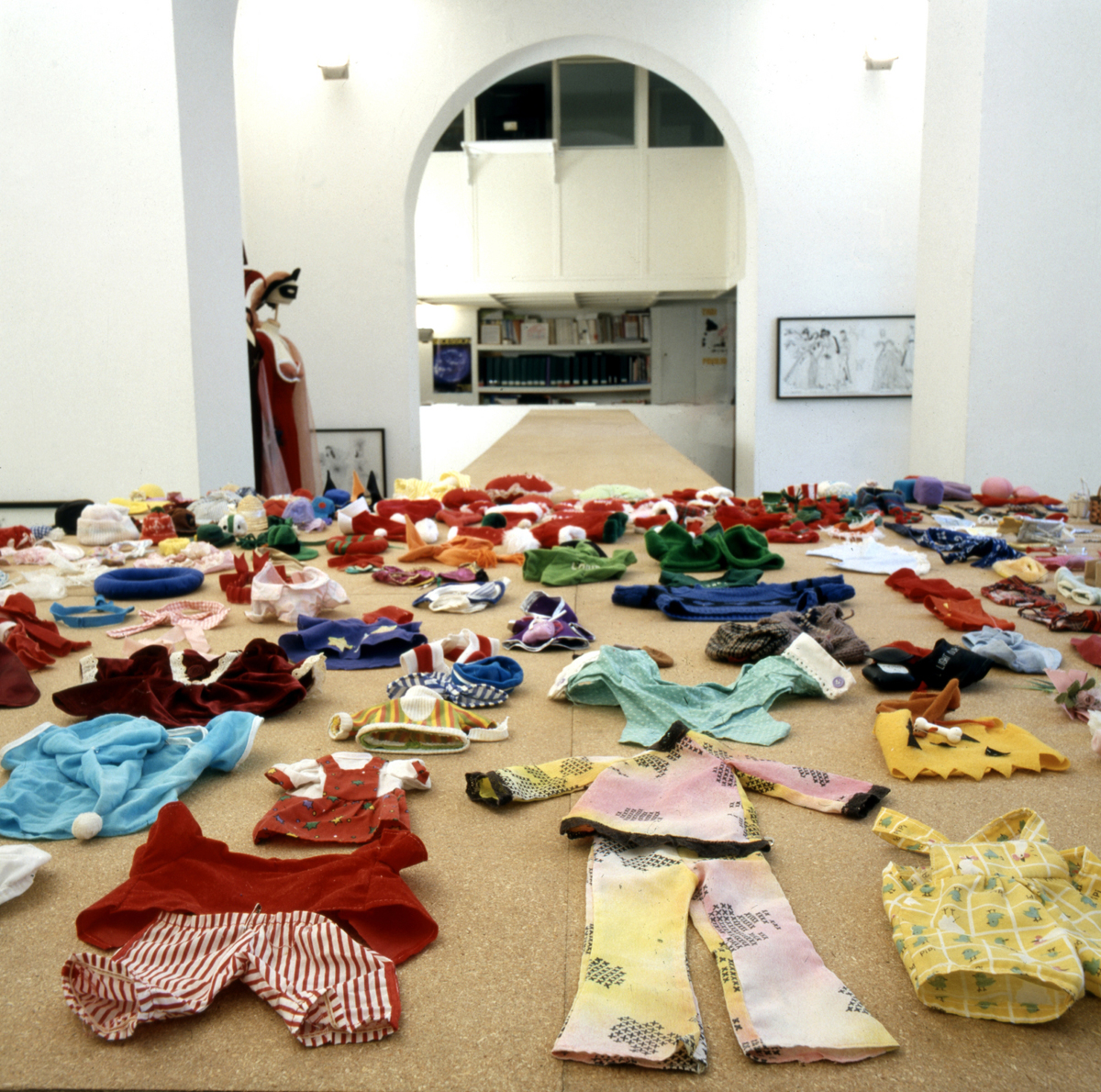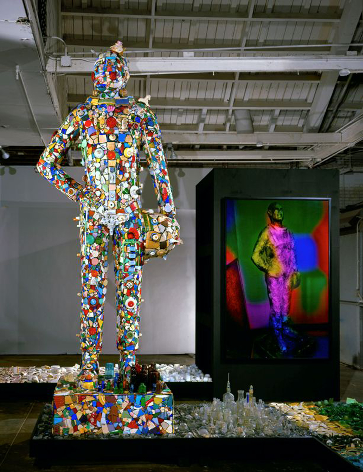 Prima di avvicinarsi alla prossima Biennale di Venezia, si può cogliere un’occasione unica per conoscere una delle fonti d’ispirazione dell’arte contemporanea di oggi. A Milano, all’HangarBicocca (24 maggio – 8 settembre), Mike Kelley: Eternity is a Long Time è una mostra che racconta gli anni tra il 2000 e il 2006, momento di svolta creativa dell’artista americano (Detroit, 1954 – Los Angeles, 2012) che con le sue opere ha indicato nuove direzioni espressive ancora attuali per protagonisti ed emergenti dell’arte internazionale. Il progetto, reso possibile da Pirelli, è curato da Emi Fontana e Andrea Lissoni che hanno selezionato lavori esposti raramente, ma che caratterizzano la produzione eterogenea di Mike Kelley, fatta di intrecci inediti di elementi culturali e memorie autobiografiche. All’interno dei grandi spazi dell’Hangar, l’allestimento invita a un percorso aperto e senza scansione cronologica, per sottolineare la capacità dell’autore di esplorare, con grande libertà ed eclettismo, generi differenti, dalla scultura ai video, utilizzando oggetti o materiali apparentemente banali che nelle mani dell’autore acquisiscono nuovo significato e forza comunicativa. I temi come la memoria, l’identità e il rapporto con l’autorità sono svolti attraversando gli universi della cultura popolare o della musica underground, di pittura e letteratura tradizionale americana o dei riti iniziatici giovanili. Un esempio è John Glenn Memorial Detroit River Reclamation Project, opera emblematica suggerita dal monumento dell’astronauta John Glenn, al quale era intitolato il liceo frequentato da Kelley, rivestita di frammenti di vetro e ceramica recuperati dall’artista nel fiume Detroit e trattati con tecnica artistica nobile; un (anti)monumento che celebra memoria personale e collettiva, immaginario mediatico e cultura popolare.