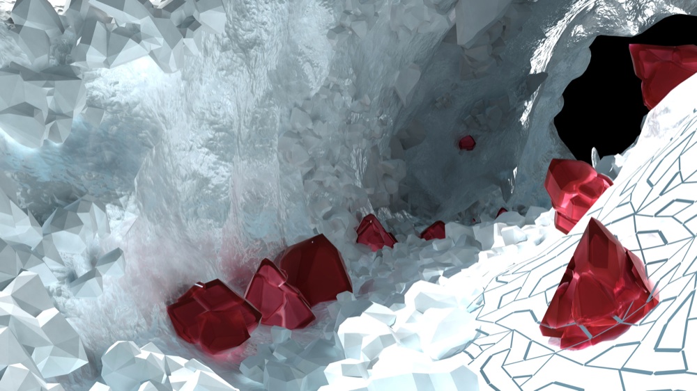 Altri autori evidenziano invece l’aspetto più magico e visionario della montagna: Giuliana Cuneaz, che si esprime attraverso una video istallazione di ghiacci e cristalli virtuali. Come a seguire l’idea di Gaston Rebuffat, che scriveva: