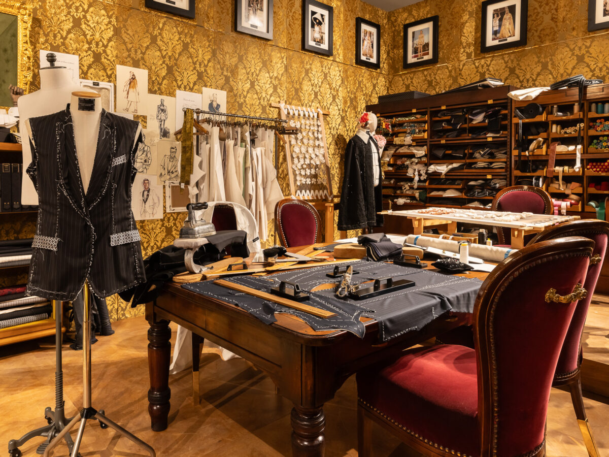 C’è la Sicilia dei mosaici bizantini e dei carretti decorati, la Roma dei busti classici e della sensualità barocca, la Milano dell’eleganza sartoriale e la Napoli del teatro popolare. Tutto convive, tutto si fonde. In questo universo, l’Alta Moda si fa narrazione e rito: colta, teatrale, a tratti ironica, sempre profondamente italiana. E ogni ambiente è un invito a perdersi, a rallentare il passo, ad ascoltare con gli occhi e guardare con il cuore