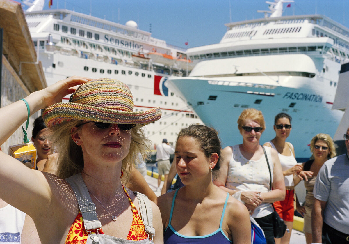 Il turismo, tema centrale della sua carriera, ritorna in Petite Planète. Parr segue il turista globale nei luoghi più iconici del viaggio contemporaneo, restituendone posture, automatismi, piccoli rituali collettivi. In filigrana, le immagini raccontano anche gli squilibri tra Nord e Sud del mondo, mostrando come l’esperienza del viaggio sia spesso standardizzata, consumata più che vissuta.
