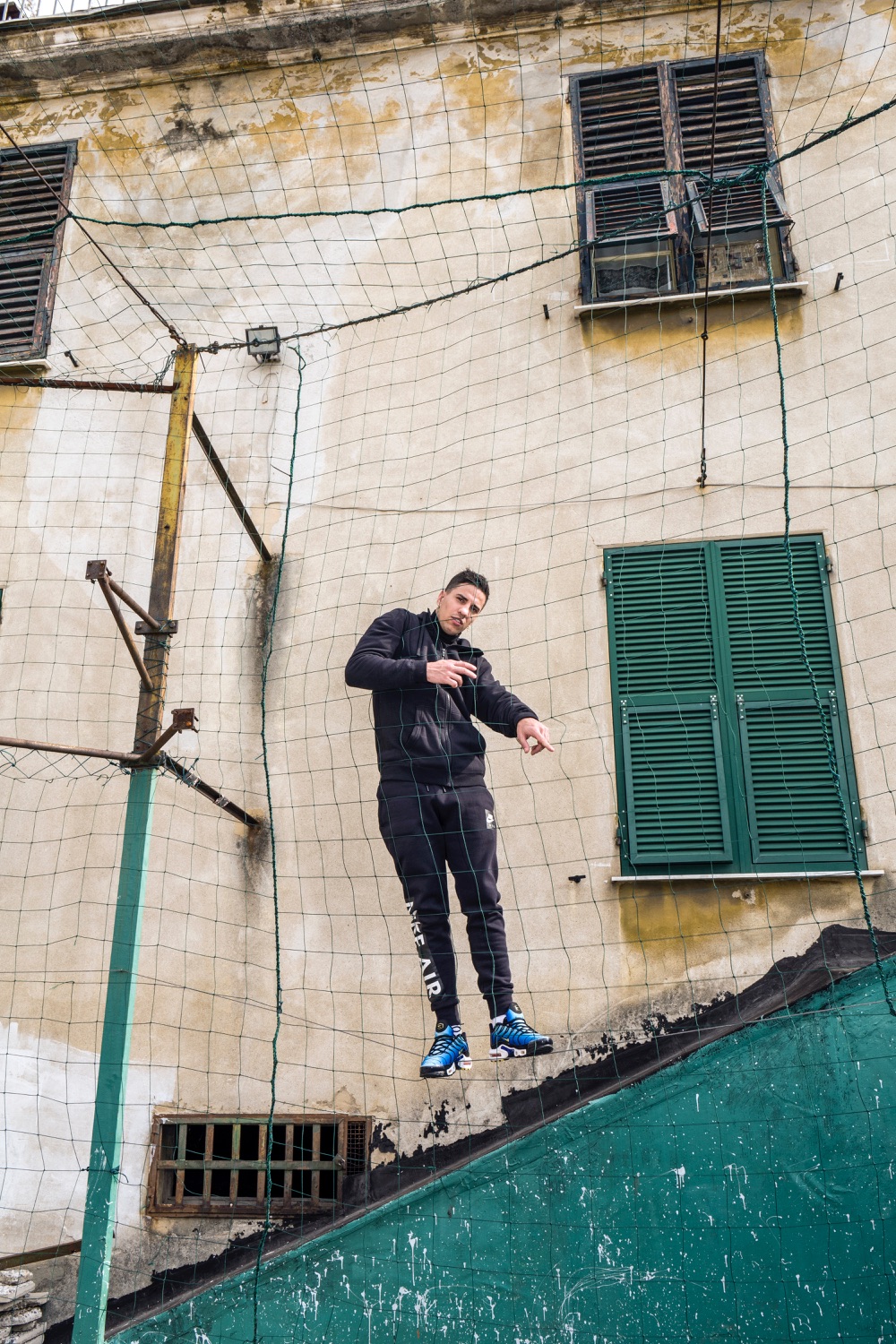 Il mio stile fotografico è molto forte, d’impatto, e questo può cozzare con le richieste di un brand. La forza di Nike è stata quella di darmi carta bianca. Avevano voglia di raccontare il personaggio di Tedua e insieme, raccontare una scarpa icona come le Air Max. Questo mi ha concesso di avere lo stesso approccio che ho ai reportage: dallo studio della figura di Mario a quello della sua città natale, Genova, che avevo bazzicato già in passato avendo dei parenti lì. Un tipo di lavoro, il mio, essenzialmente giornalistico.