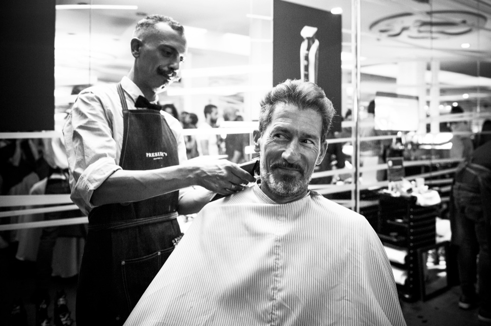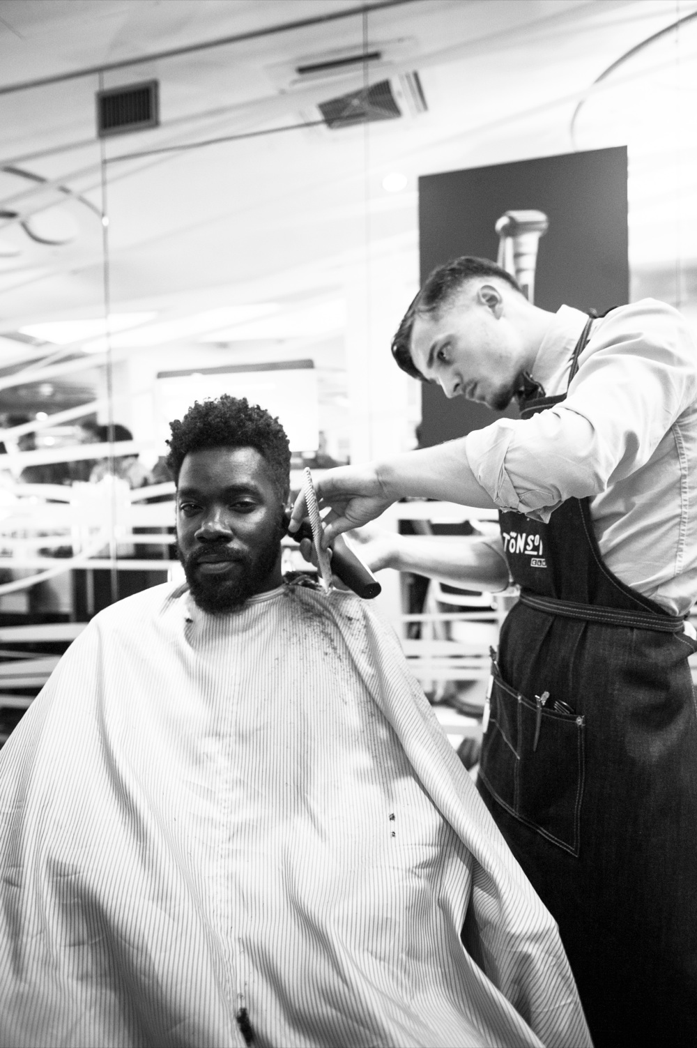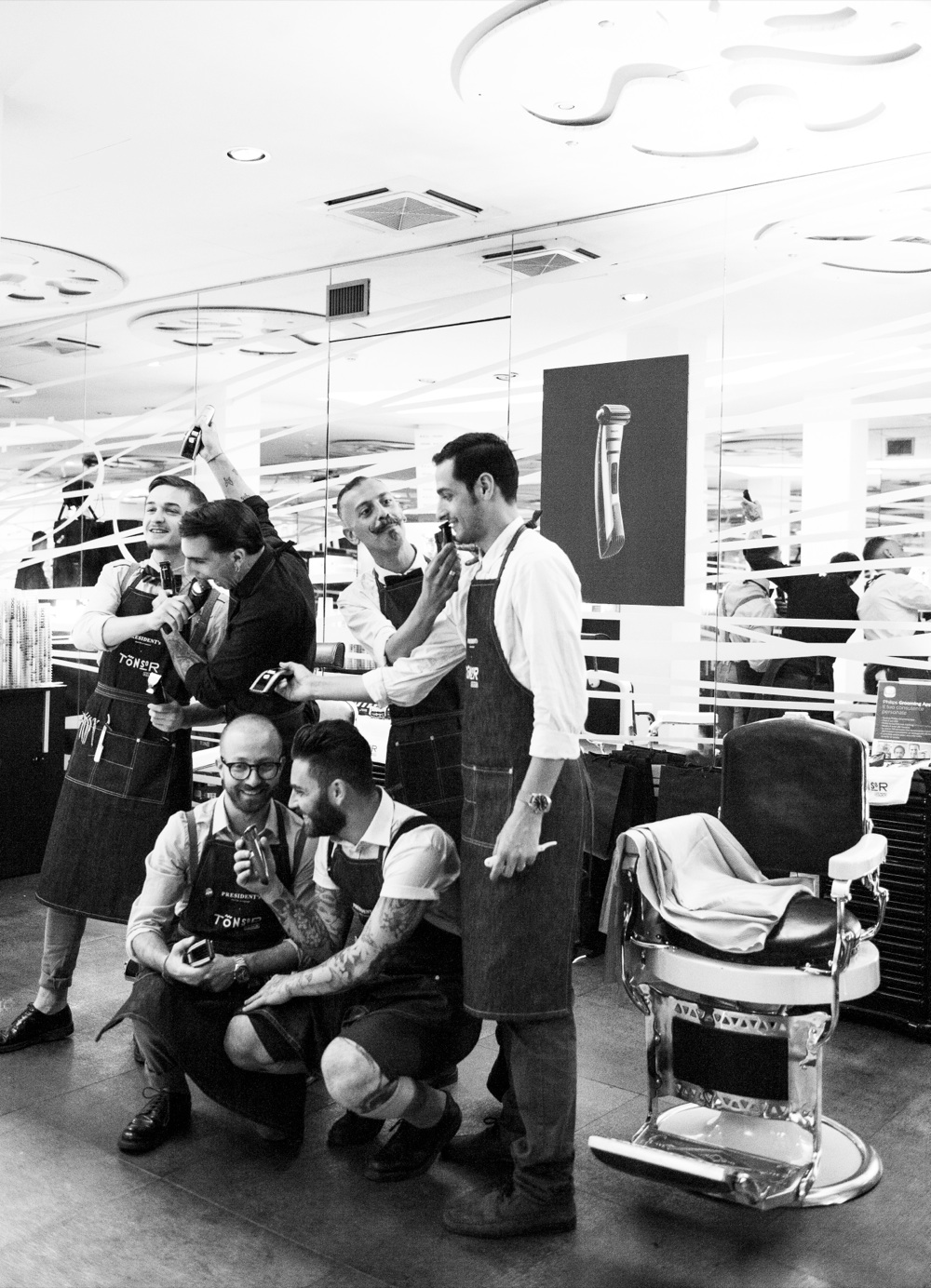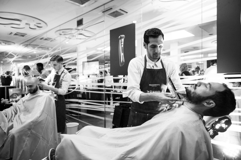 I barbieri del Tonsor Club armati degli ultimi modelli di rasoi Philips hanno regolato barba e capelli degli ospiti