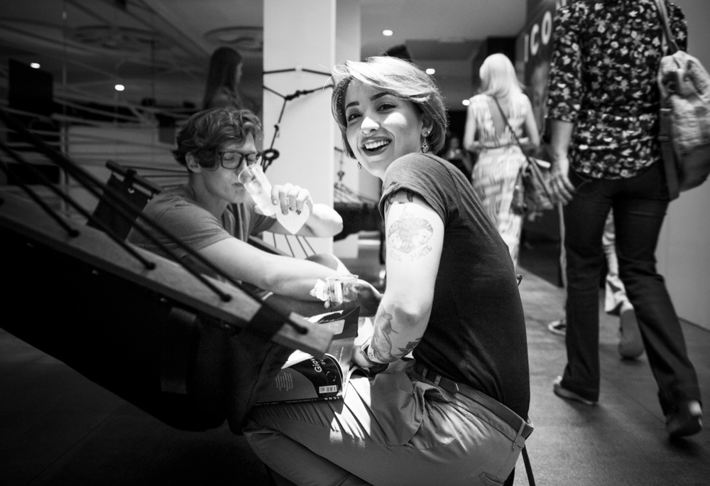 Un’amaca all’ingresso dello Spazio Ex Cobianchi invitava gli ospiti a dondolarsi leggendo l’ultimo numero di Icon