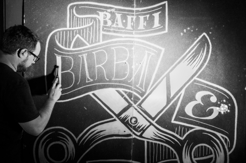 E così, tra un taglio di capelli e una regolata di barba e baffi, gli invitati al grooming party hanno assistito a una performance live dell’illustratore Davide Pagliardini, art director e graphic designer appassionato di lettering che con uno spazzolino Diamond Clean al posto del gessetto, ha realizzato su una lavagna un disegno tema grooming.