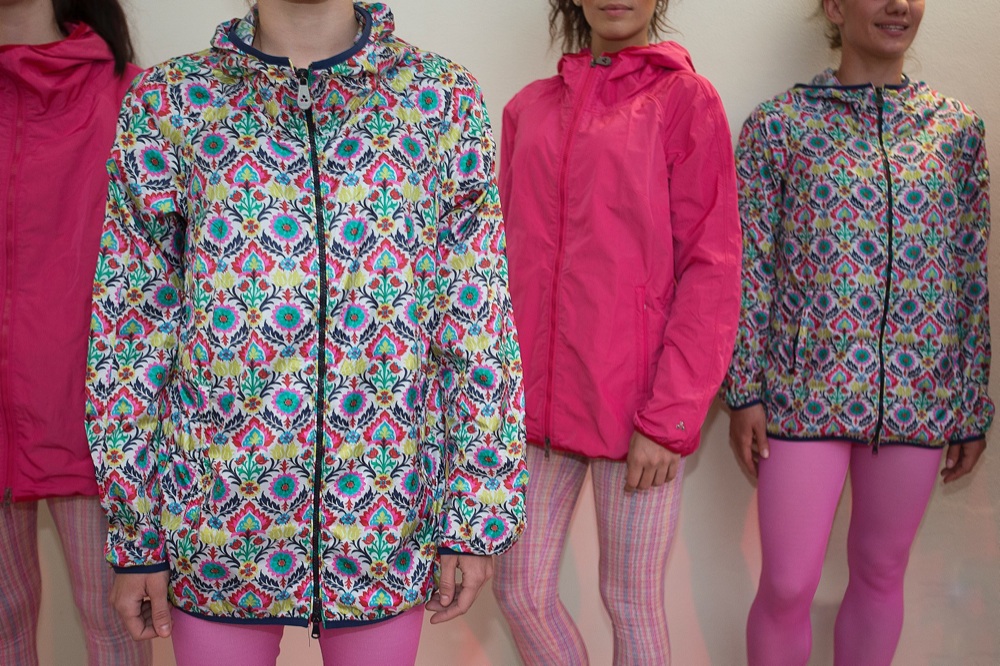 Movimenti ipnotici e danze eleganti hanno messo in evidenza le stampe della nuova giacca Shaka windbreaker con motivi grafici, tessuti e stoffe artigianali con i colori ispirati ai bazar di Katmandu.