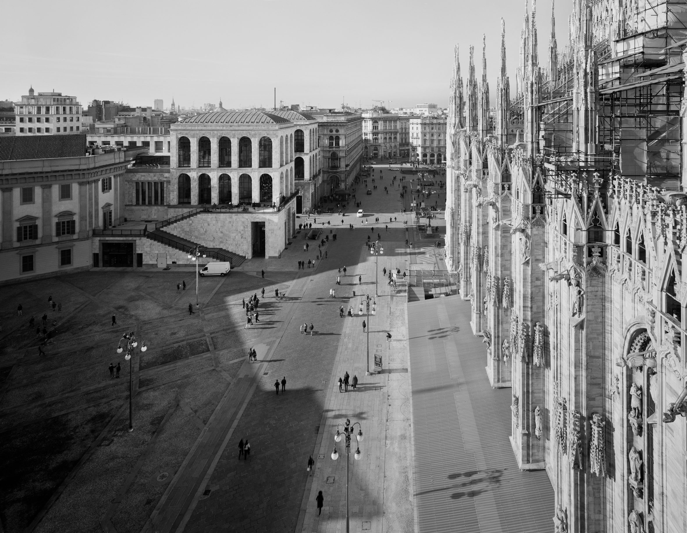 Alla Bel Vedere, ci imbattiamo nello sguardo che Gabriele Basilico rivolge dall’alto a Piazza Duomo col suo inconfondibile black&white. È colorata invece la natura morta di Francesca Moscheni esposta a Palazzo Bovara, illuminata da una luce rarefatta che richiama certi quadri della pittura fiamminga.