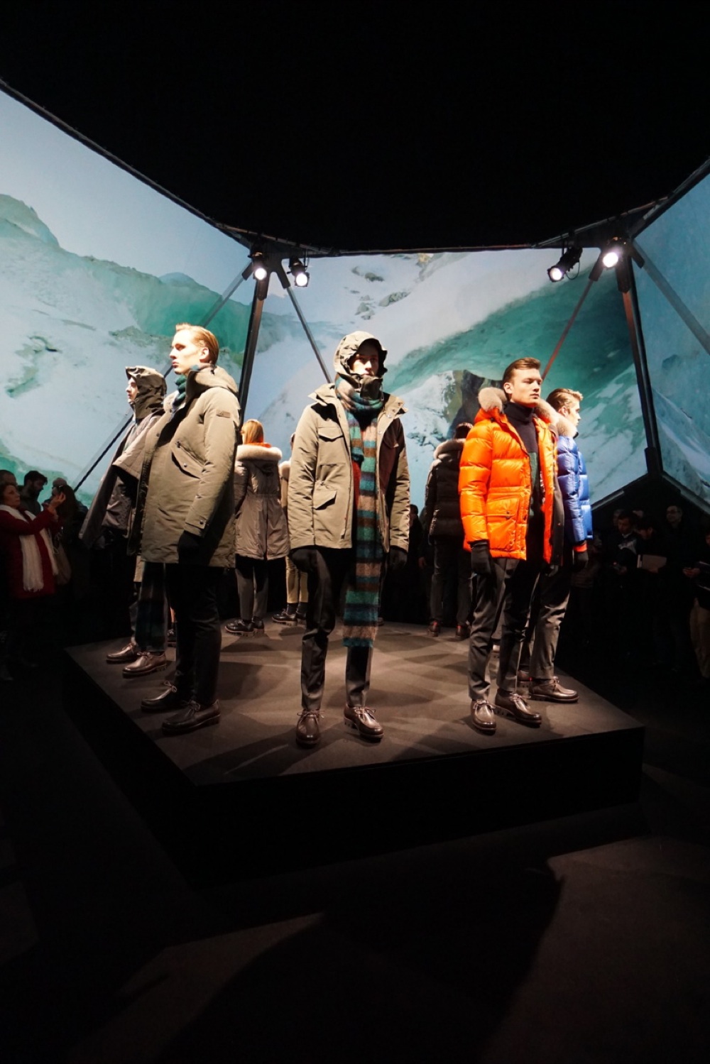 Una performace live. Uno special event firmato Peuterey. All’ora dell’aperitivo della seconda giornata della moda fiorentina, all’interno degli spazi della Dogana, gli ospiti della prima presentazione ufficiale legata al menswear, sono stati invitati a compiere un viaggio attraverso il mondo primordiale dei minerali in tutte le loro manifestazioni. Un inno alla marcia, al tema portante della kermesse di moda maschile. Al centro della location un’installazione architettonica sfaccettata sulla quale venivano proiettate immagini 4D di montagne, cime nevate, jungle e sentieri polverosi, hanno fatto da sfondo alla collezione del prossimo autunno inverno pensata per un globetrotter metropolitano.
