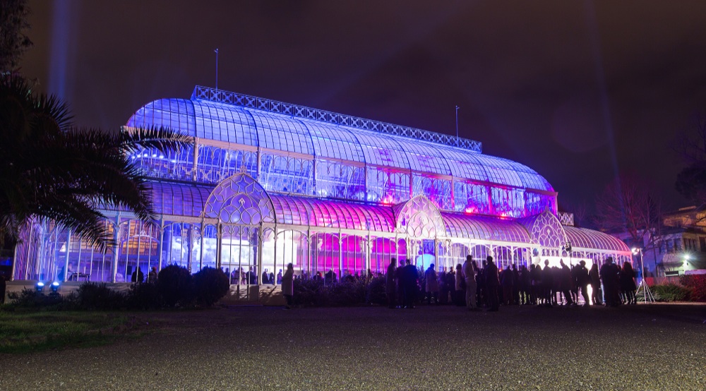 Notte del 14 gennaio. Il Tepidarium del Roster, la serra più grande d’Italia costruita a Firenze nella secondo metà del Novecento nel Giardino dell’Orticoltura, si illumina di colori fluorescenti in occasione dell’evento-concerto di Hamaki-Ho: performace live musicali e artistiche hanno intrattenuto gli ospiti fino a notte fonda.