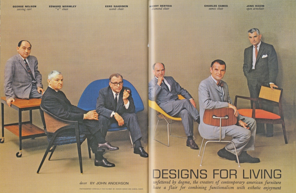George Nelson, Edward Wormley, Eero Saarinen, Harry Bertoia, Charles Eames, Jens Risom su Playboy di luglio 1961