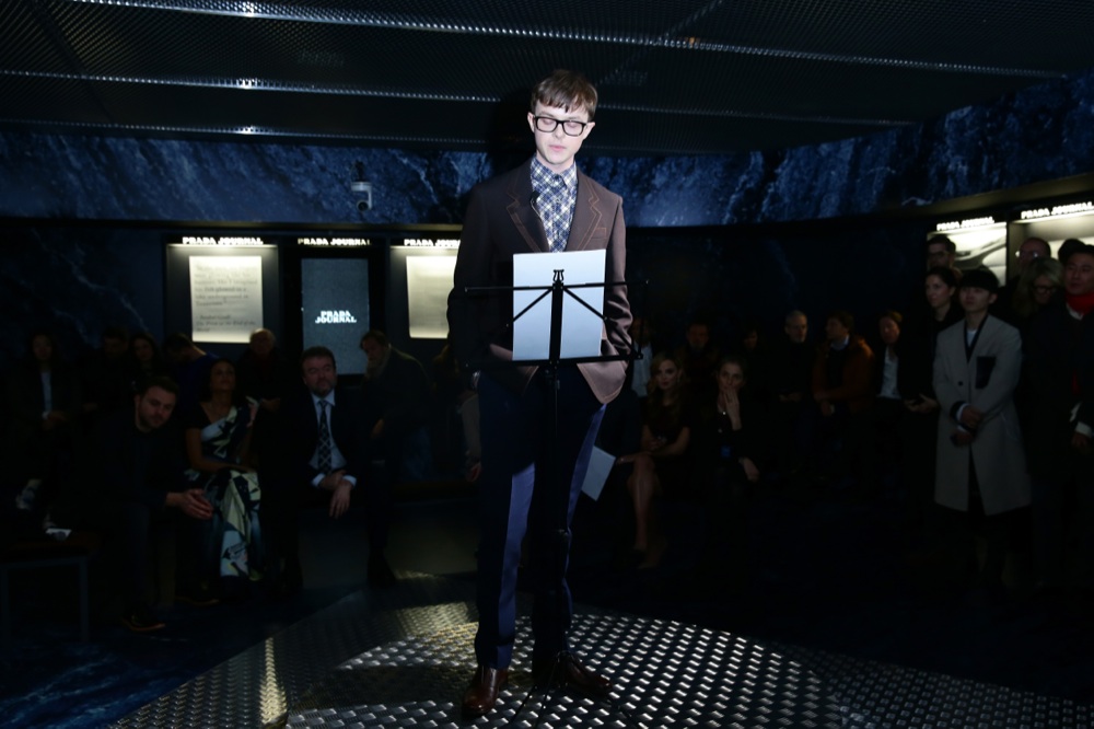 Filippo Timi durante il reading di uno dei racconti vincitori di Prada Journal – @Getty Images