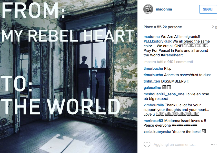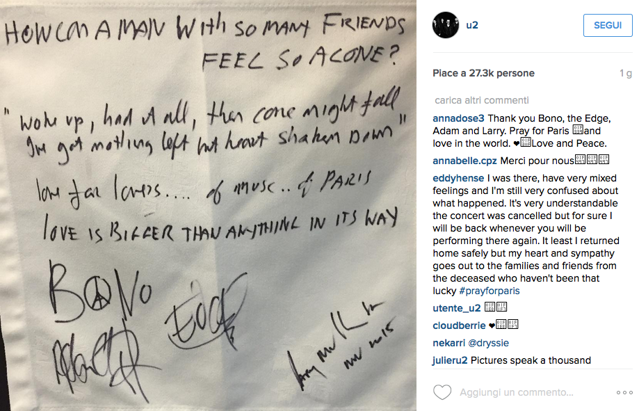 Da tutto il mondo, dalle icone della moda a quelle dello sport, dall’arte allo spettacolo, la luce di una candela di speranza non ha tardato a farsi vedere. Anzi lo slogan che da instagram a tweetter è rimbalzato senza sosta #PrayForParis non ha smesso mai di esser vicino alle vittime di questo attacco terroristico che ha colpito non solo Parigi ma tutto il mondo. Dall’hashtag #PrayersForParis lanciato da Papa Francesco al simbolo disegnato dall’artista francese Jean Jullien a che Madonna dal palco in lacrime ha dedicato il tour a Parigi, fino a Bono degli U2 che è andato con la band proprio nei luoghi degli attentati. Tutto il mondo dello sport, visto anche l’attacco alla stadio, si è stretto attorno alla Francia per un inno alla pace.