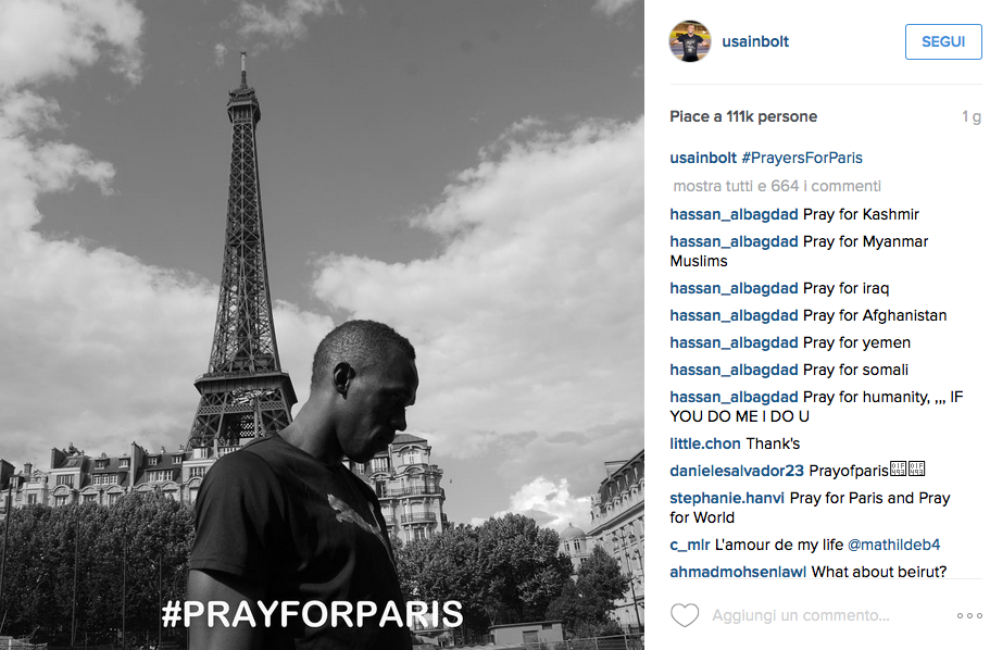 L’attacco terroristico a Parigi ha commosso e sconvolto il mondo. Dalle icone dello sport agli artisti internazionali il grido è PrayforPeace. Le testimonianze di solidarietà invadono i social per una pace senza confini