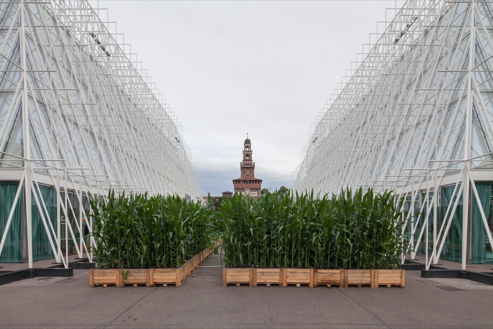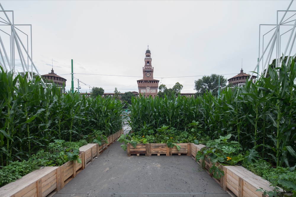 Inatteso nel cuore della città, dove oggi ha sede Expo Gate – la porta di accesso alla prossima Esposizione Universale – è arrivato un campo di mais che spariglia le carte di un luogo la cui immagine è sedimentata negli occhi e nella memoria dei milanesi: un concerto di pannocchie si affolla ora davanti al Castello Sforzesco.