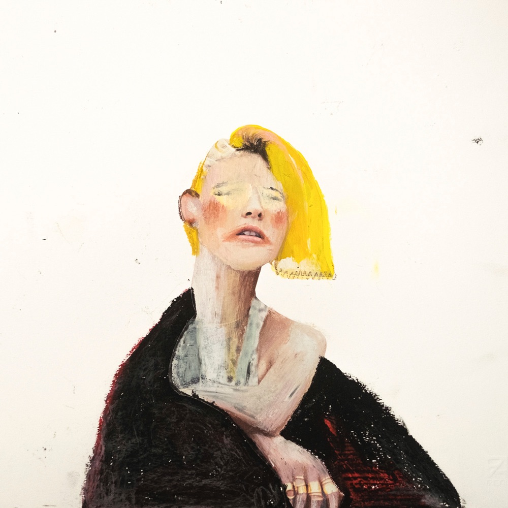 Rachele Moscatelli propone una serie di opere su carta. Al centro la figura femminile. Icona di bellezza, ma allo stesso tempo depositaria dell’affetto e del dolore materno.