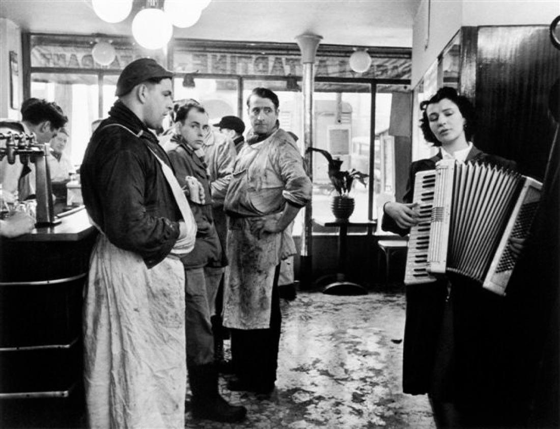 Ecco, tutto questo è Robert Doisneau, che cattura con il suo obbiettivo bambini che giocano, suonatrici di fisarmonica, ritratti di famiglia in una strada, momenti di chiacchiere tra adulti al caffè o in piazza… La vita, insomma.