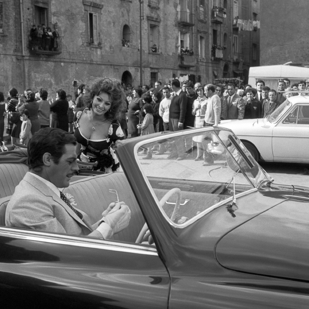 C’è Marcello Maistroanni che ‘invita’ Sophia Lauren a salire sulla sua cabriolet e la diva napoletana che lo accetta con un sorriso folgorante. C’è Federico Fellini che scherza con le sue attrici sul set e un primo piano di Giulietta Masina con la sua malinconia. E poi i francesi Brigitte Bardot e Jean-Paul Belmondo ammiccare all’obiettivo sensuali, dolci, inafferrabili.