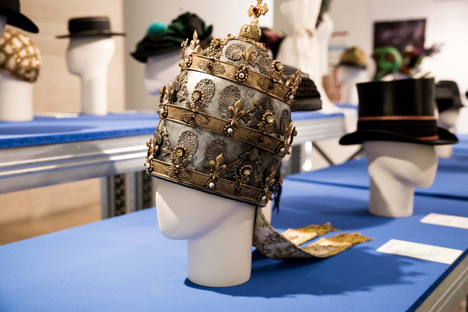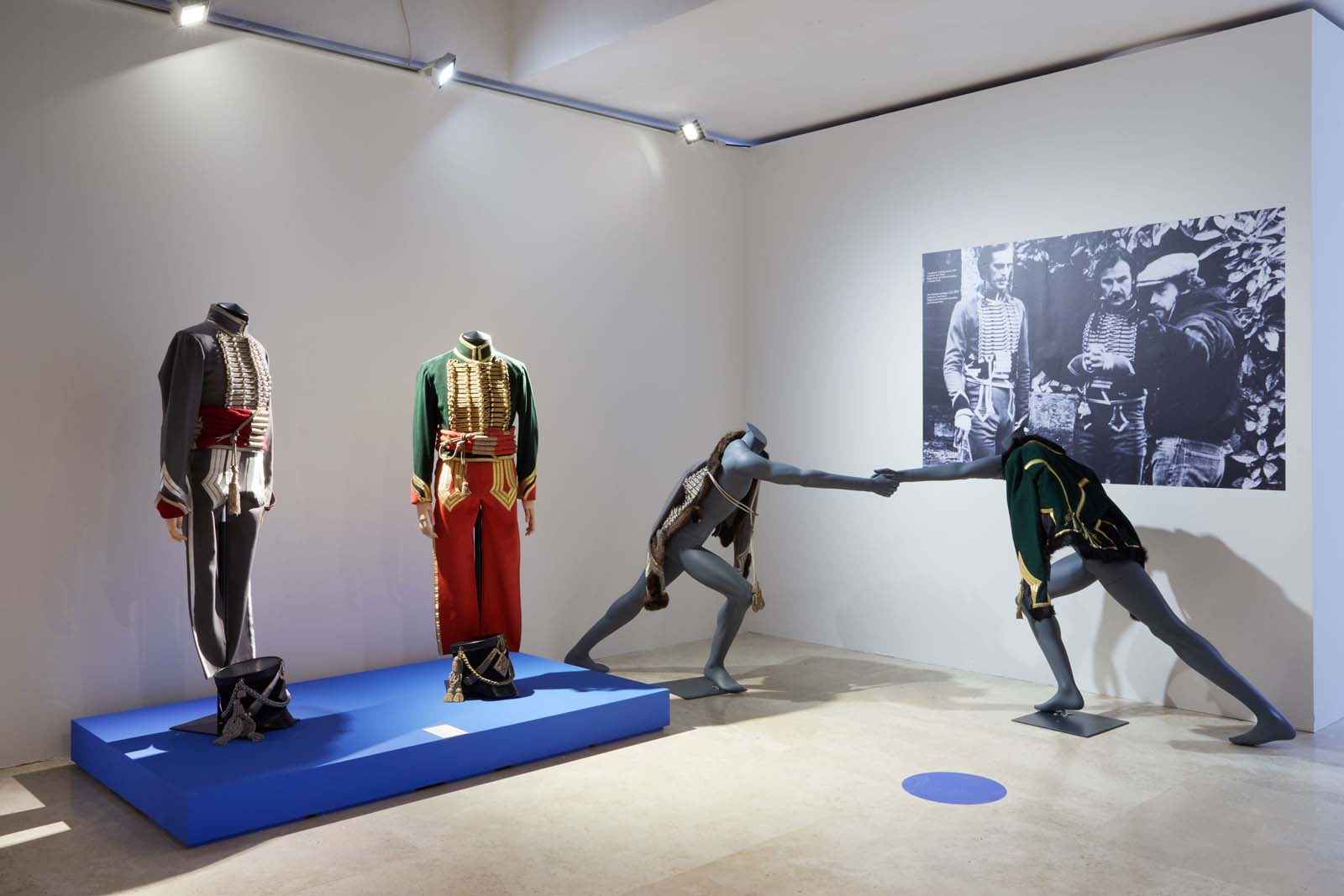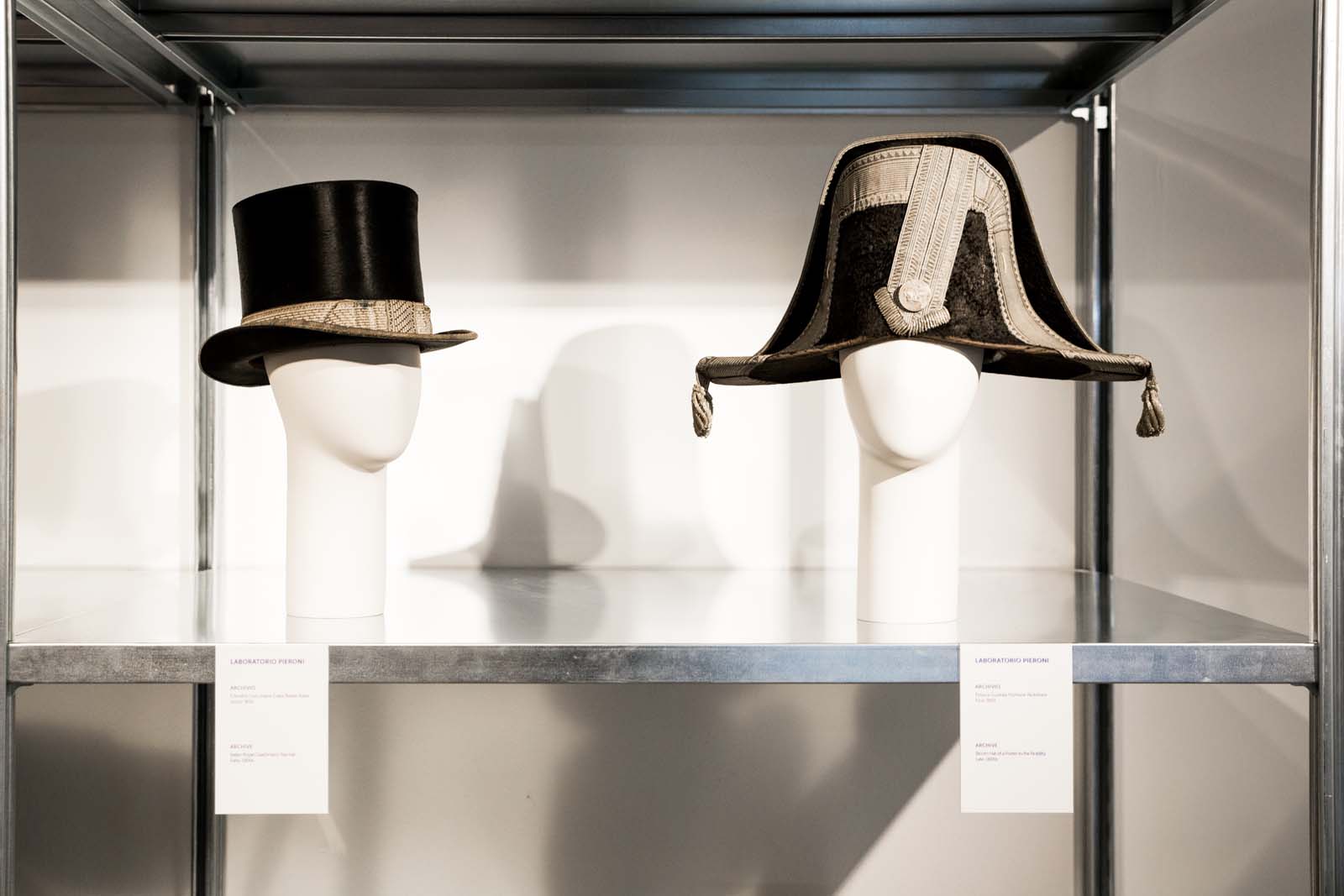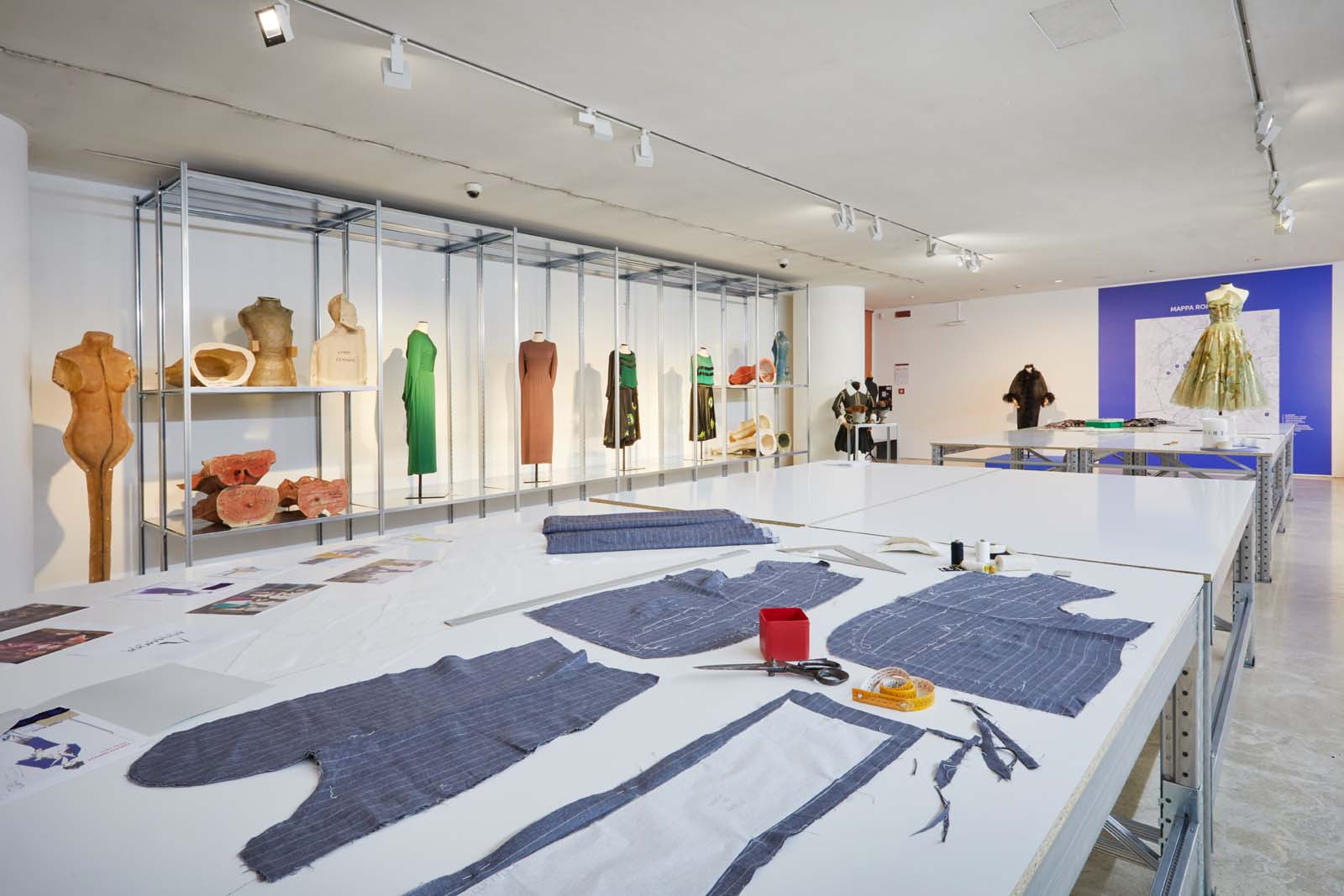 La mappa che apre il percorso espositivo consente di localizzare i vari atelier sparsi per la città, tratteggiando i confini di un museo della sartoria di Costume a cielo aperto. Si prosegue poi con un tuffo negli ambienti di un laboratorio ricreato per l’occasione, dove gli scampoli di tessuto e le strutture metalliche a muro dialogano con i manichini che indossano alcuni dei costumi più celebri del cinema.