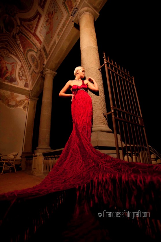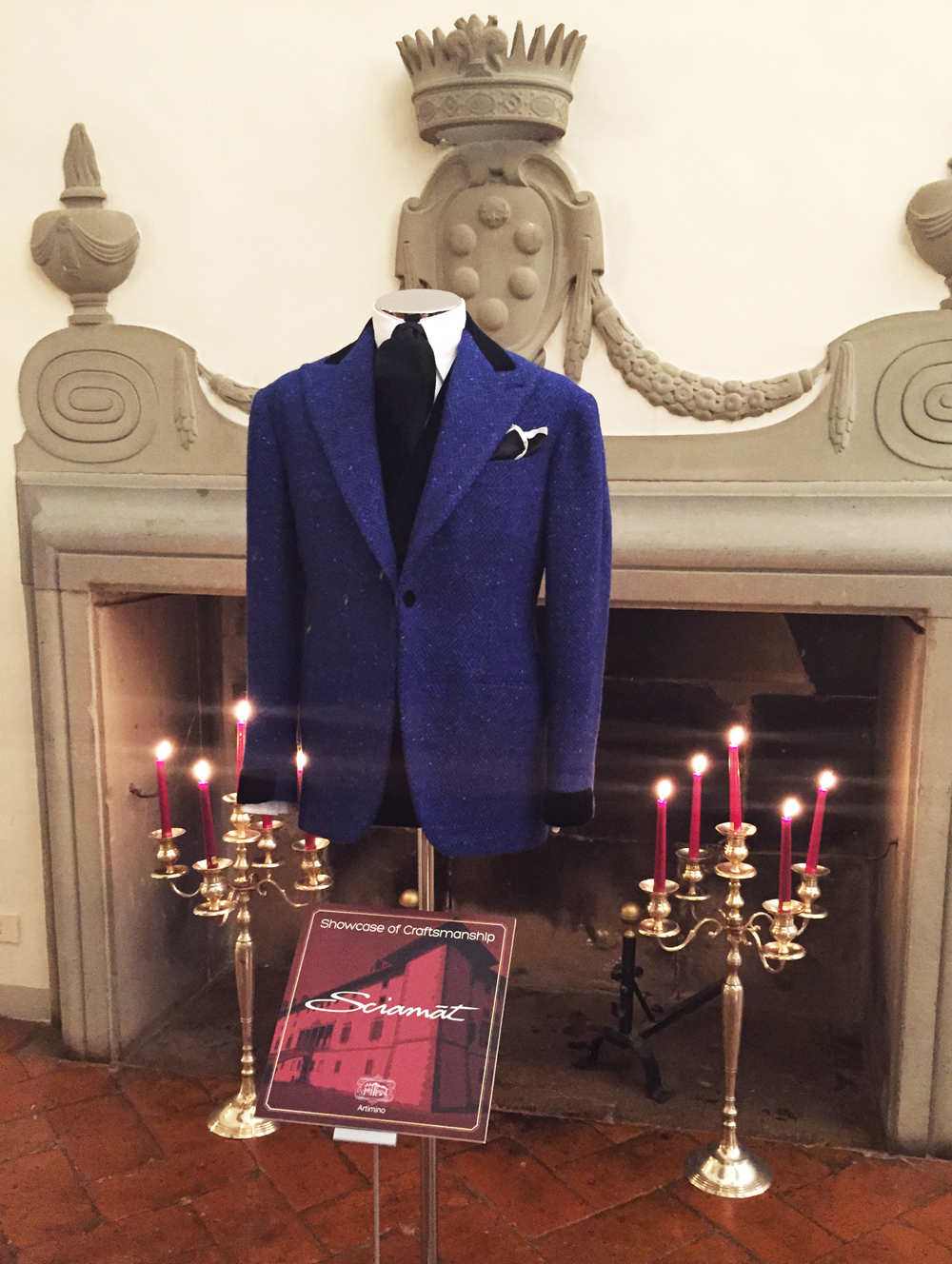 Una degustazione di vini DOC prodotti della tenuta ha aperto la serata agli ospiti, accogliendoli nei saloni rinascimentali dove esponevano i vari brand. In presentazione le creazioni couture dello stilista Michele Gaudiomonte, i pellami pregiati delle calzature di Duccio Venturi, il gentleman sartoriale di Sciamat, le scarpe maschili Ducal di Firenze realizzate a mano, una selezione di pezzi unici del gioielliere milanese Stefan Hafner e, per finire, le poltrone geometriche di Bongio Casa in armonico contrasto con il luogo.