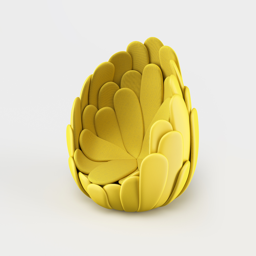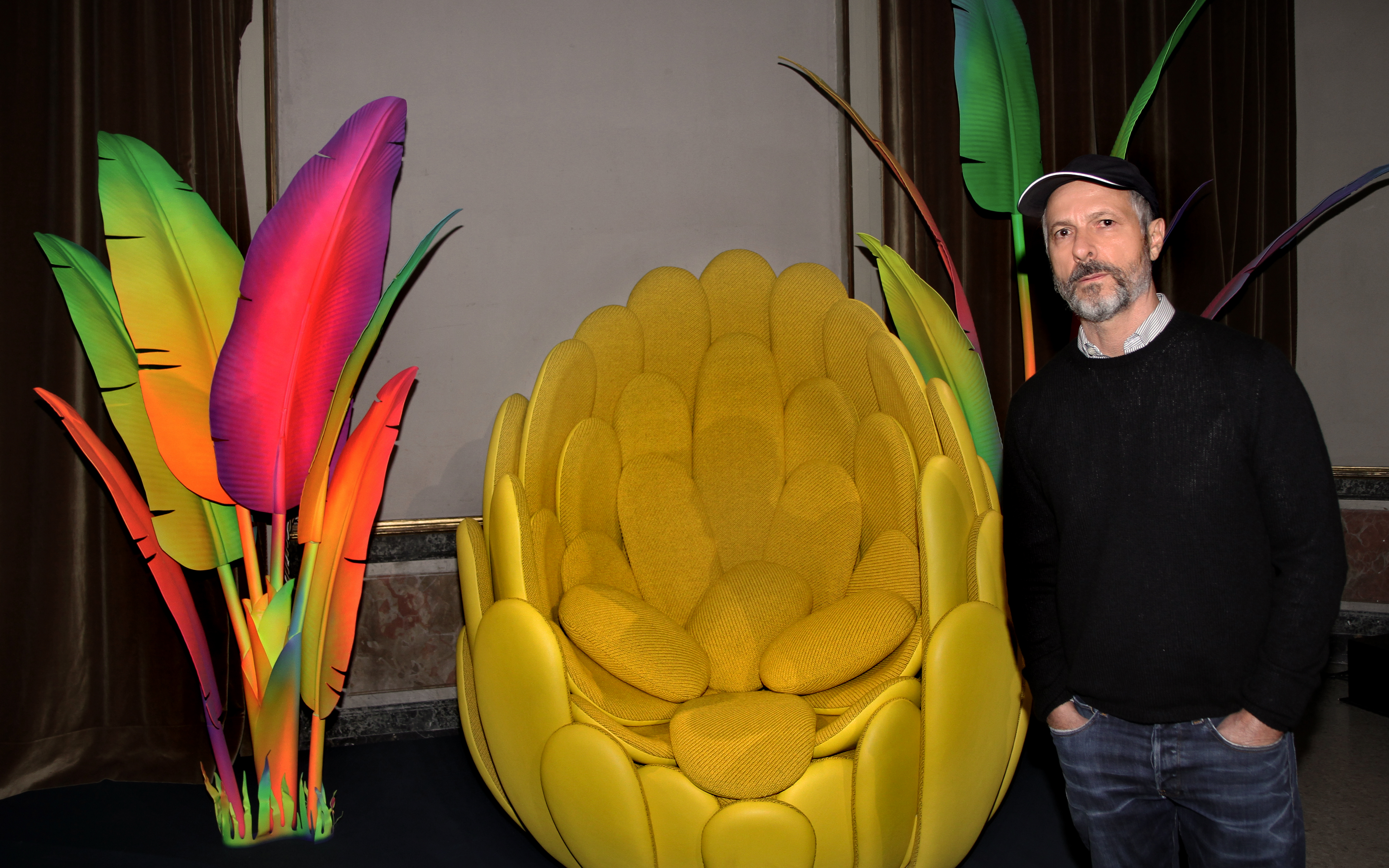 Dal Brasile a Milano, culla della storia dello studio dei fratelli Campana, arriva Bulbo, uno strano fiore tropicale, che si solleva per abbracciare chi lo occupa. Ognuno dei suoi petali è rivestito in pelle Louis Vuitton all’esterno e soffice tessuto all’interno. È un nido, un rifugio generoso per una persona sola, o un’alcova accogliente per due. «La natura è la fonte di ispirazione dello studio Campana. Lavoro sempre con un obiettivo, quello di scrivere con i miei lavori un messaggio, proteggere la natura, il pianeta, utilizzando anche materiali riciclati». Tradizione o innovazione, quindi? «Manteniamo le trazioni che stanno scomparendo con le nuove tecnologie. Il fatto a mano per noi è importantissimo, questo è il link che cin connette a Louis Vuitton.