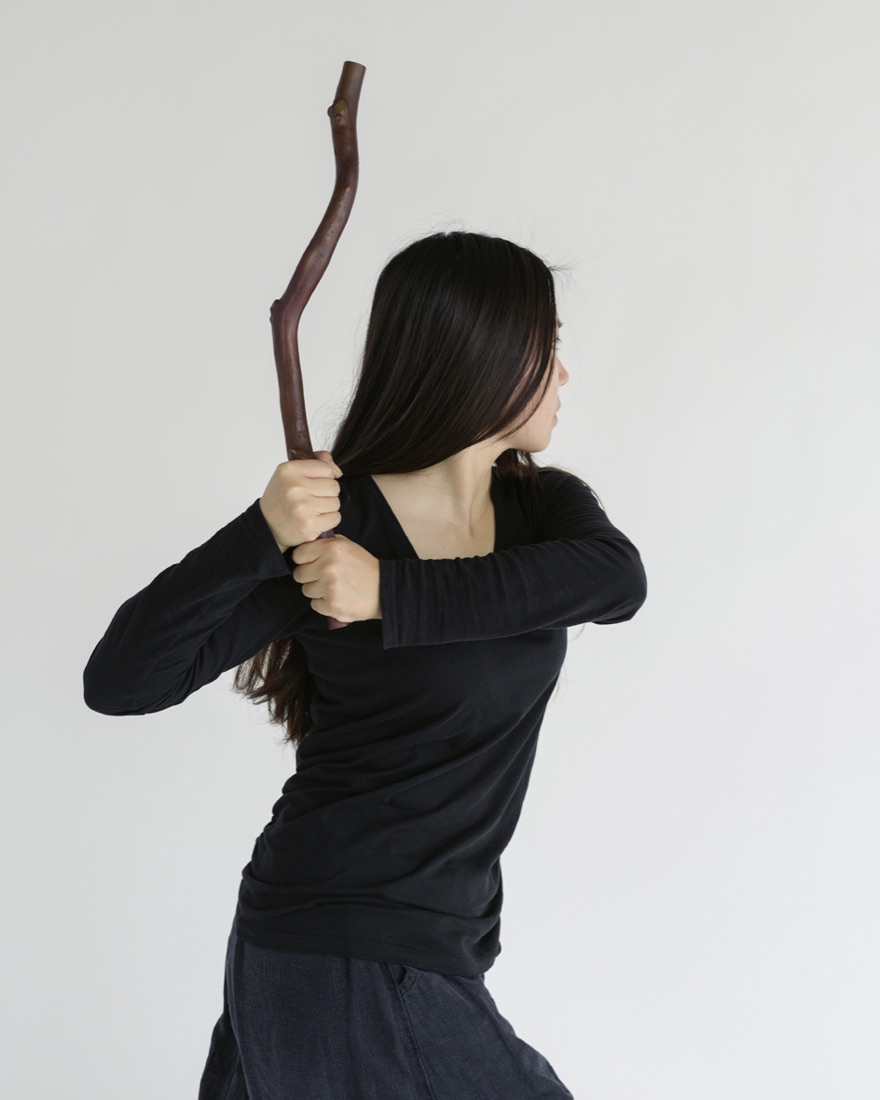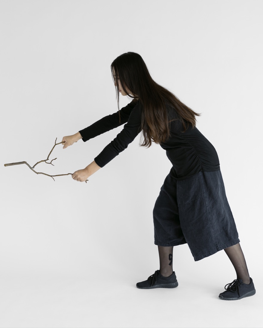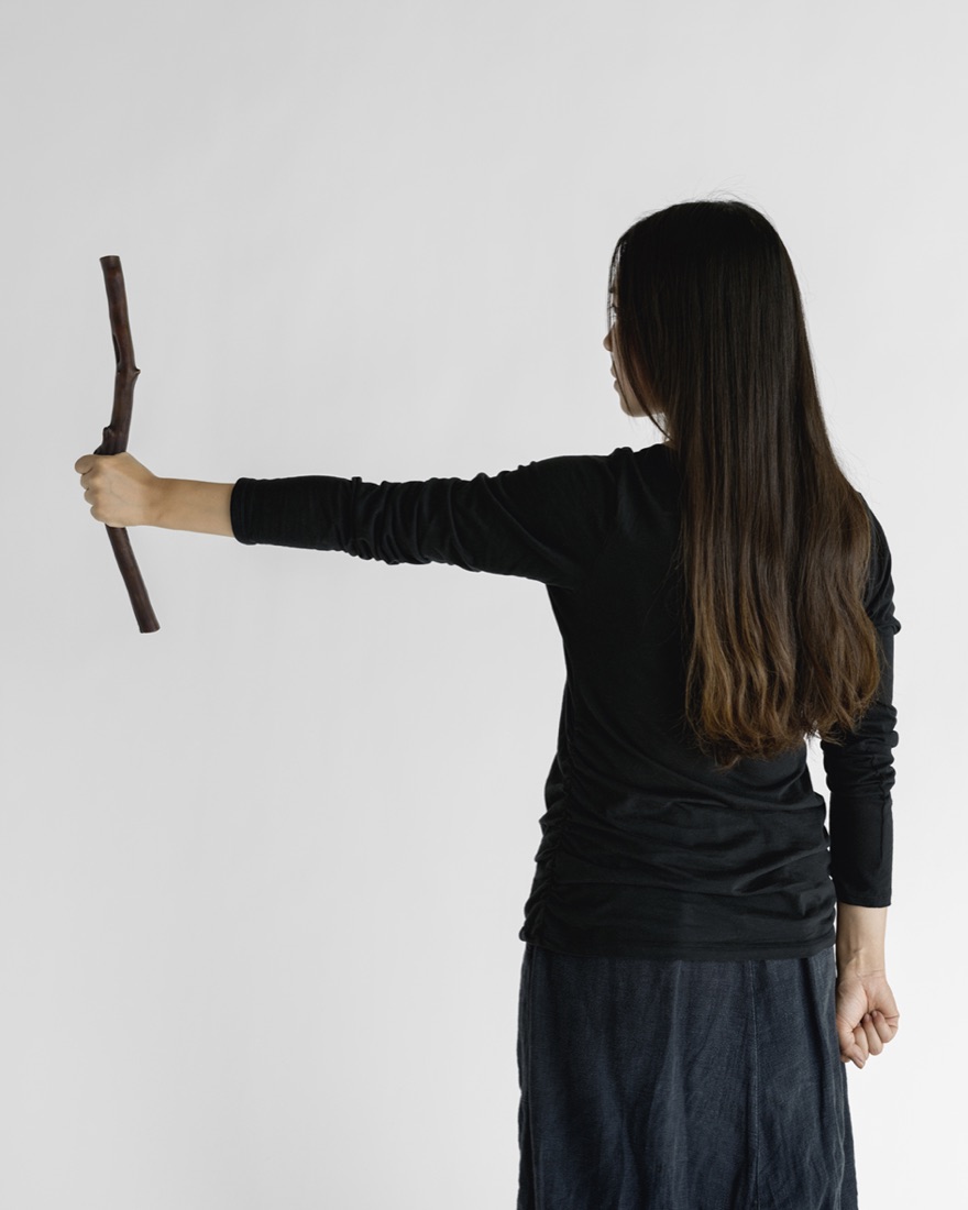 A sua volta questo dialogo si confronta con gli ultimi lavori di Lockhart, incentrati sui suoi studi sul ritratto, la rappresentazione, il movimento, il lavoro e il potere delle donne. E qui espone la serie A Bundle and Five Variations (2018), un progetto in cui si rintraccia la sua cifra più classica di coreografa della fotografia. Per la prima volta si cimenta anche nella scultura in bronzo, con cui realizza calchi di bastoni di manzanita, ippocastano dell’Ohio e noce nero che l’artista ha raccolto personalmente sulle montagne della Sierra Nevada in California. Grazie alla collaborazione con Ravi GuneWardena della Sogetsu School of Ikebana, queste sculture sono state disposte in sei diverse composizioni, a raccontare l’equilibrio tra rapporti naturali e artefatti. Seguendo questa stessa struttura e variazione, nasce la serie Nine Sticks in Nine Movements (2018), con Sichong Xie, protagonista degli scatti: ogni posizione rimanda a una miriade di pose provenienti dalla società e dalla storia dell’arte. Come una danza, le fotografie e le composizioni scultoree catturano l’interazione tra la coreografia e la fisicità dei bastoni in bronzo.
